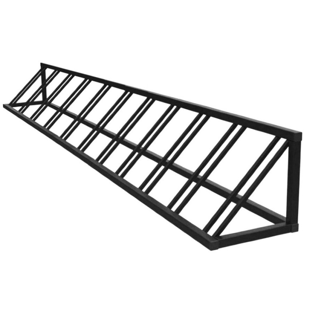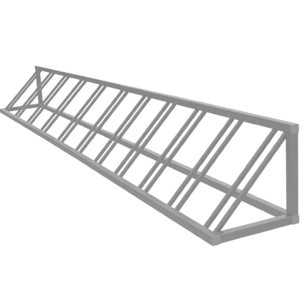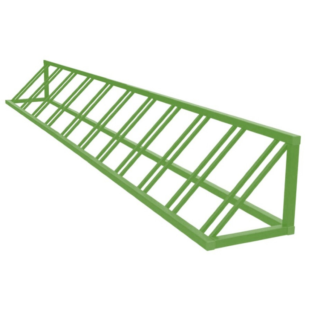 Вместимость: 11 велосипедов. Габариты (Д×Ш×В): 320×45×45 см. Материал: прочная сталь с защитным покрытием. Крепление: анкерное, к асфальту или бетону. Вес: 48 кг.