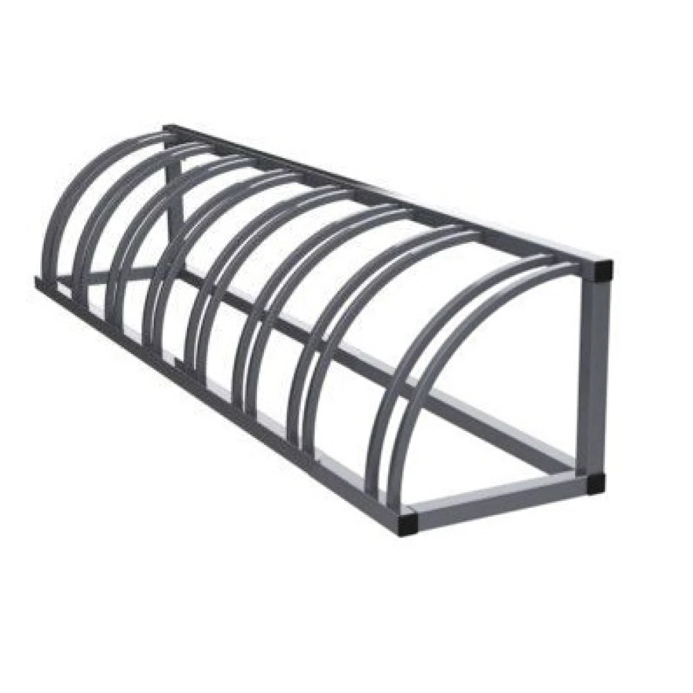 Велопарковка на 8 мест с закруглённым дизайном, длина 230 см, ширина 45 см, высота 45 см, вес 35 кг.