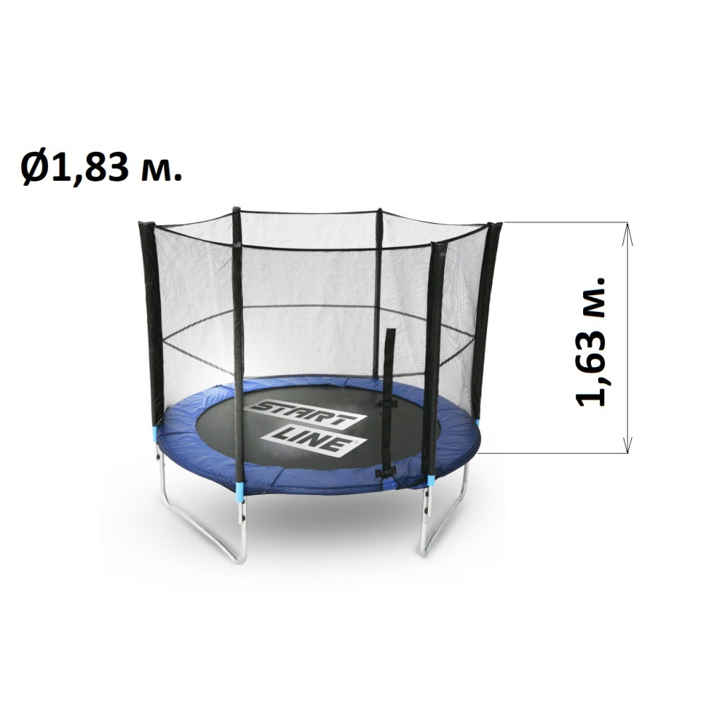 Батут 6 футов (1,83 м) с внешней сеткой - прекрасная возможность не только приятного досуга, но и поддержания физического здоровья. Стальные пружины, нейлоновая защитная сетка, полипропилен с защитой от УФ-излучения, 6 держателей сетки.
