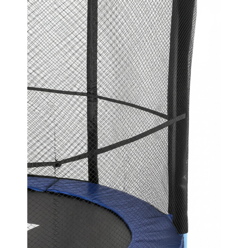 Также по периметру батут огражден защитной сеткой, для безопасности прыжков. Она надежна прикреплена и не даст случайно выпасть. Чтобы выйти, используется молния и фиксирующие защелки в сетке.