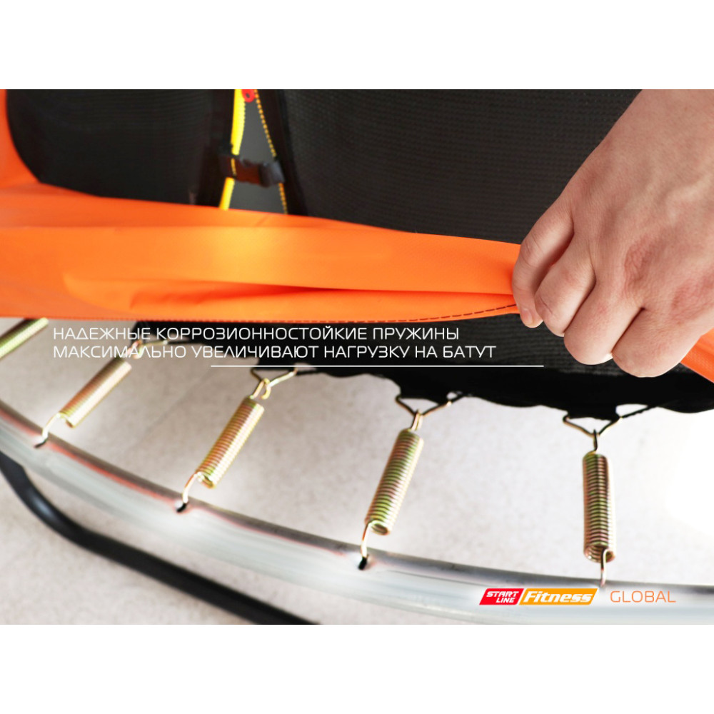 Для увеличения высоты прыжка даже на самом маленьком батуте используется 48 пружин. Поверхность для прыжков сделана из прочного полипропилена последнего поколения Перматрон. Пружины, выполненные из стали высокого качества, имеют защиту от износа и растягивания, позволяя тем самым увеличить срок службы батута. Все пружины для обеспечения безопасности закрыты защитным чехлом.