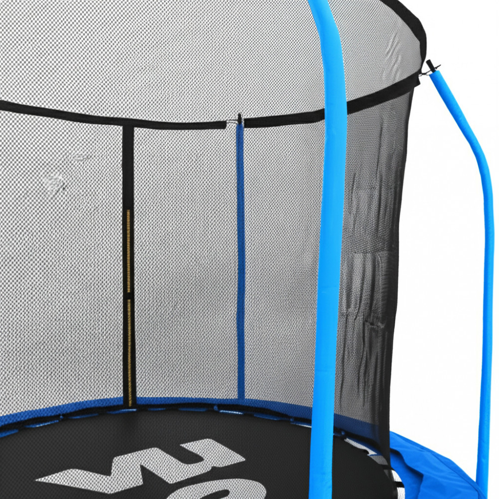 Защитная нейлоновая сетка сделана из высокопрочного материала и надежно защитит прыгающих. Она прочно крепится к стойкам батута, а вход застегивается на молнию и дополнительно фиксируется защелками, расположенными снаружи.