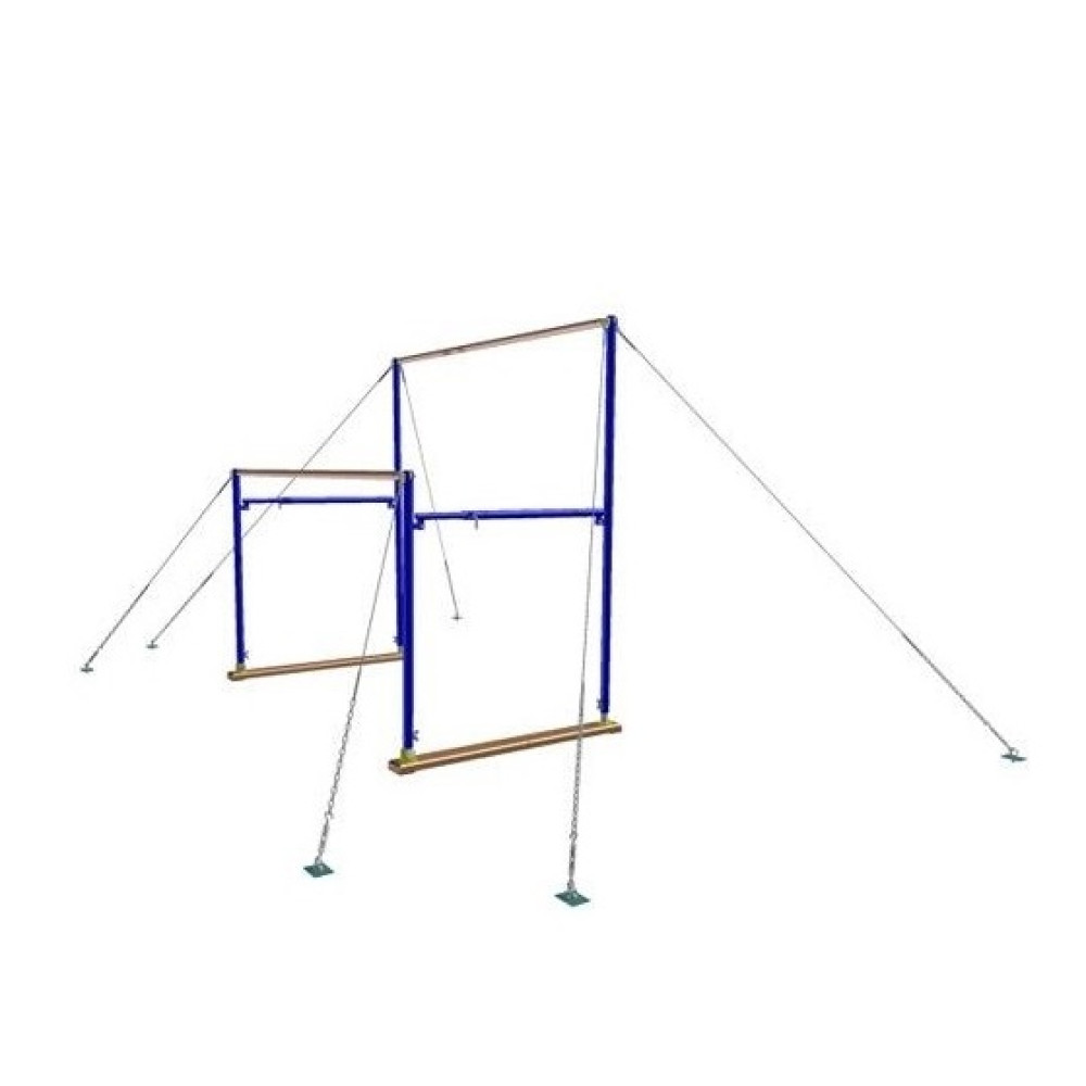 Брусья женские, разновысокие + Жерди деревянные со стальным сердечником (разновысокие) предназначены для выполнения спортивных упражнений и имеют длину 2400 мм с высотой низких и высоких брусьев от 1400 до 2400 мм.