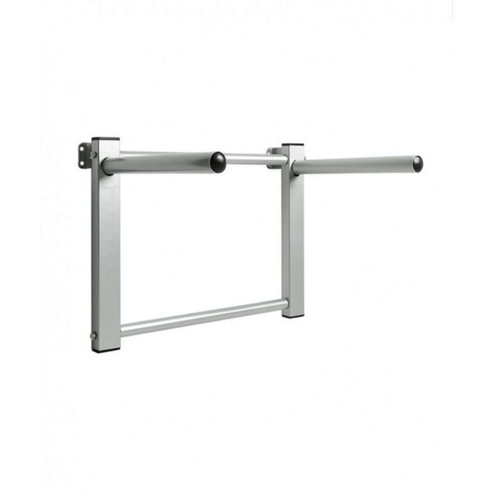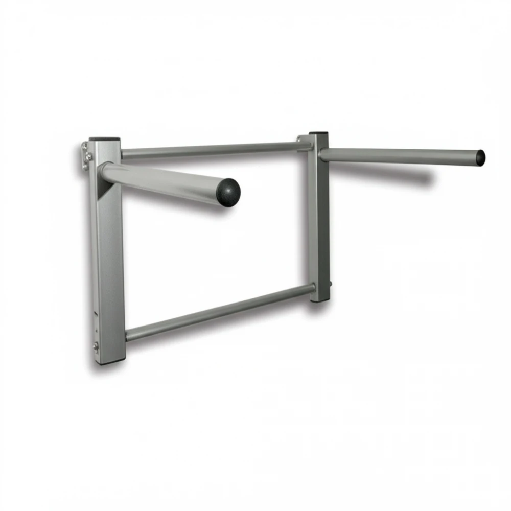 Данный тренажёр, который выглядит как тяжёлая металлическая рама, который имеет крюки для навешивания на гимнастическую стенку, что даёт возможность прикрепить снаряд на разных плоскостях и сделать занятия более удобными, независимо от роста и возраста людей. Можно сделать занятия более интересными, если навесные брусья сделать в низком расположении.
