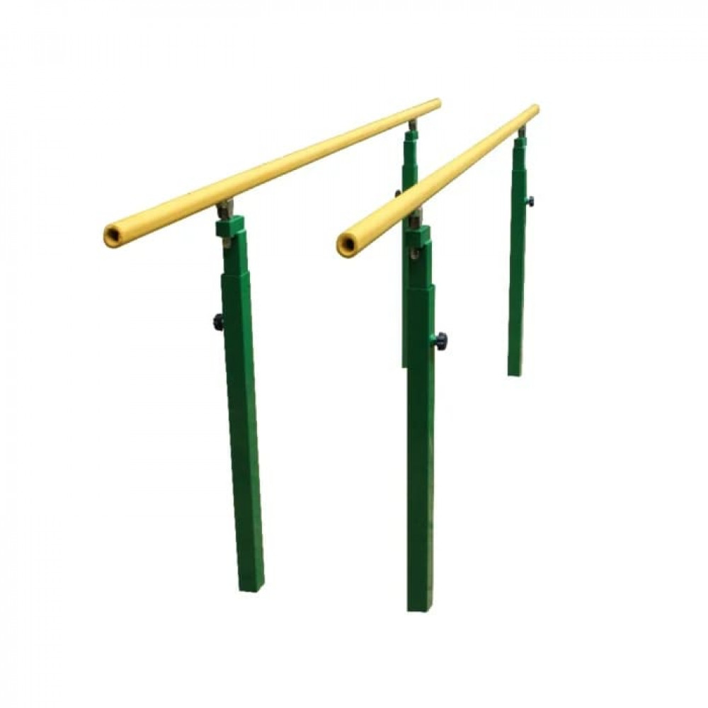 Брусья состоят из прочной рамы, четырёх стоек с механизмами зажима и фиксации, а также двух стеклопластиковых перекладин. Они идеально подойдут для использования на спортивных площадках образовательных учреждений и открытых тренажёрных залах.