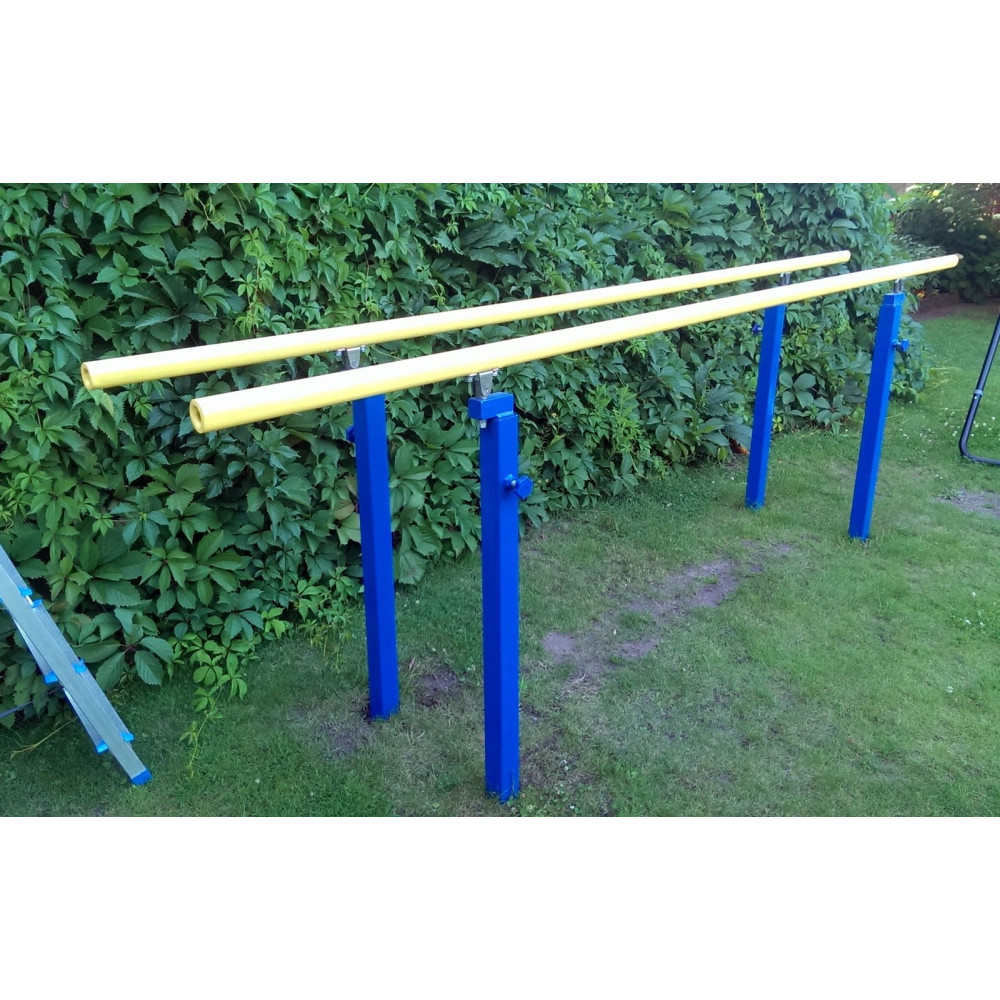 Данные параллельные брусья длиной 3,5 метра предназначены для установки на спортивных площадках. Удобство в эксплуатации обеспечивается возможностью регулировки высоты, что делает их подходящими как для профессиональных спортсменов, так и для любителей.