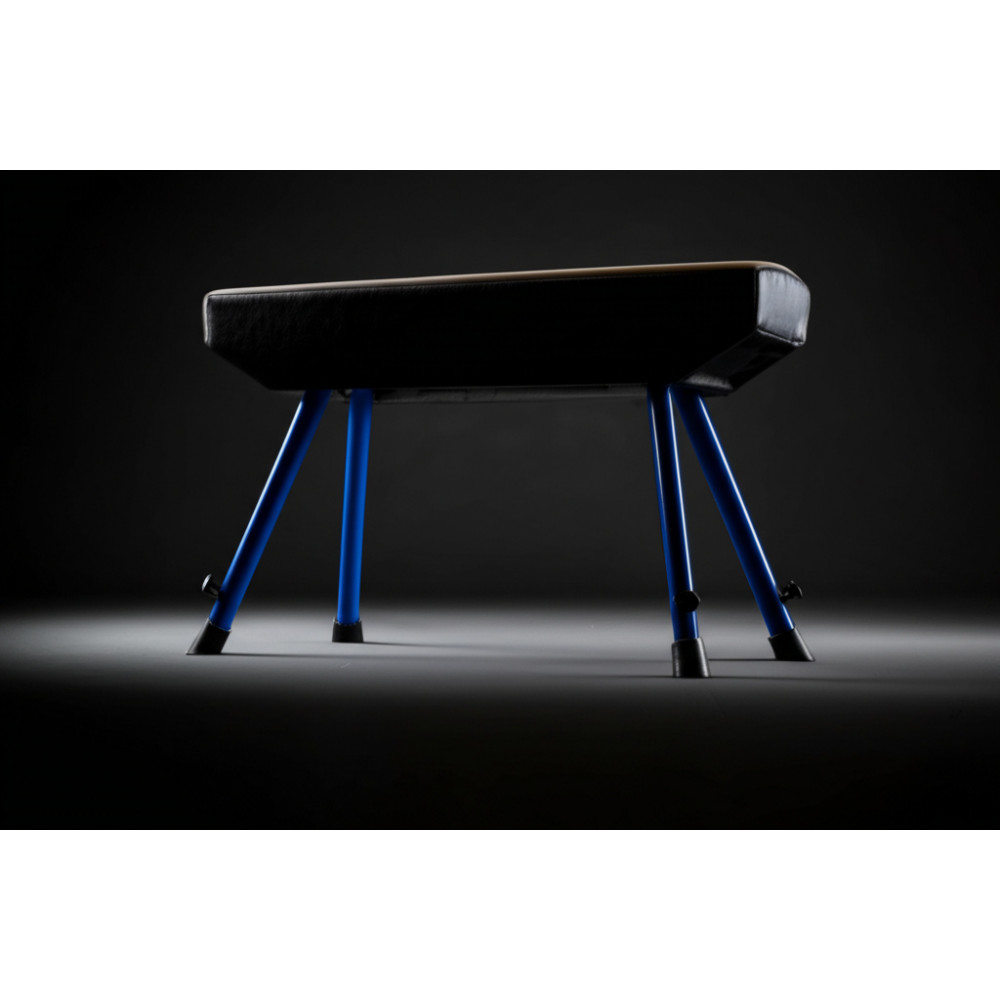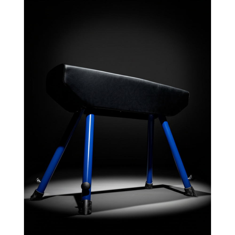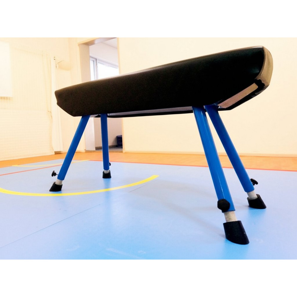 Выдвижные телескопические опоры также обеспечивают регулировку снаряда по высоте. Под искусственной кожей находится туго набитый, упругий наполнитель чёрного, либо коричневого цвета. Высокая устойчивость коня достигается благодаря широко расставленным выдвижным опорам и специальному креплению к полу.