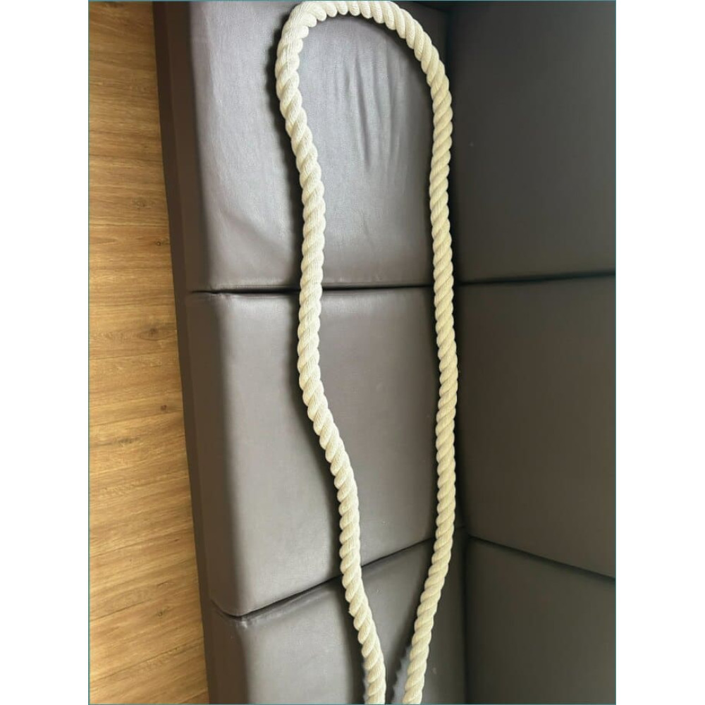 Канат для перетягивания белого цвета, произведен в России. Он отлично подходит для использования в спортивных залах, фитнес-клубах, а также дома.