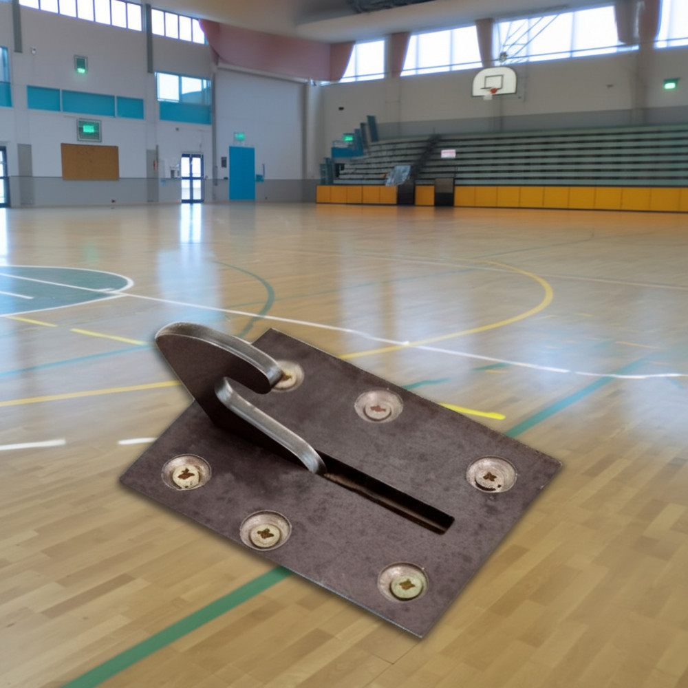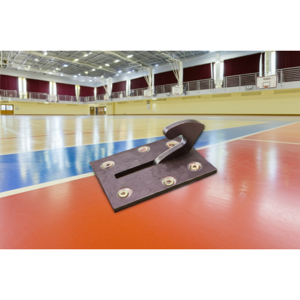 Крепление позволяет быстро и безопасно устанавливать гимнастические снаряды в спортивных залах, что особенно важно для эффективной тренировки.