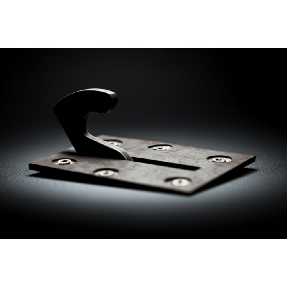 Крепление представляет собой металлическую пластину с шестью отверстиями для фиксирования к полу. Основные характеристики крепления: