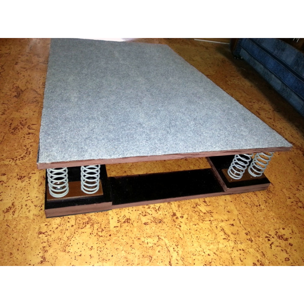 - Покрытие: площадка покрыта ковролином, который предотвращает скольжение и обеспечивает лучшее сцепление с обувью во время тренировок.