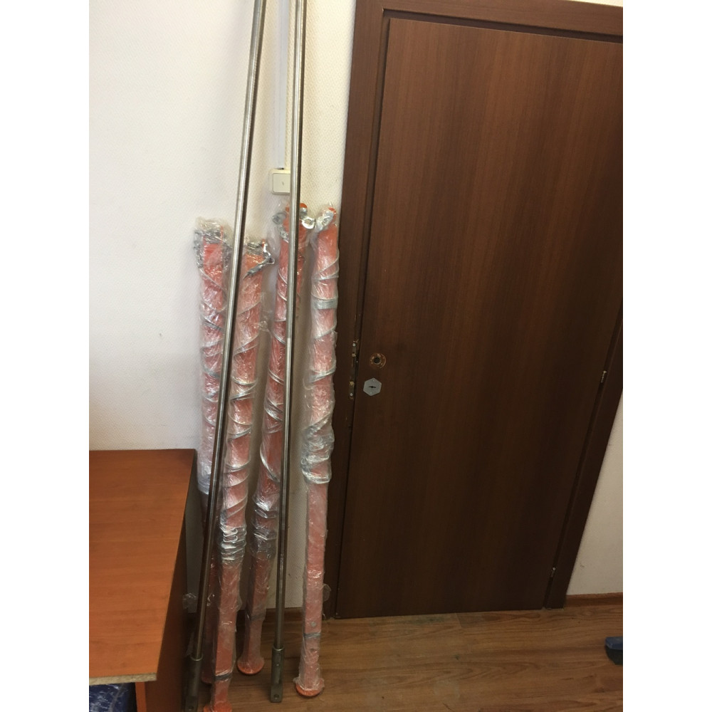 - телескопических стоек (2 шт), одна из которые находится около стены, а другая на крепится к полу;