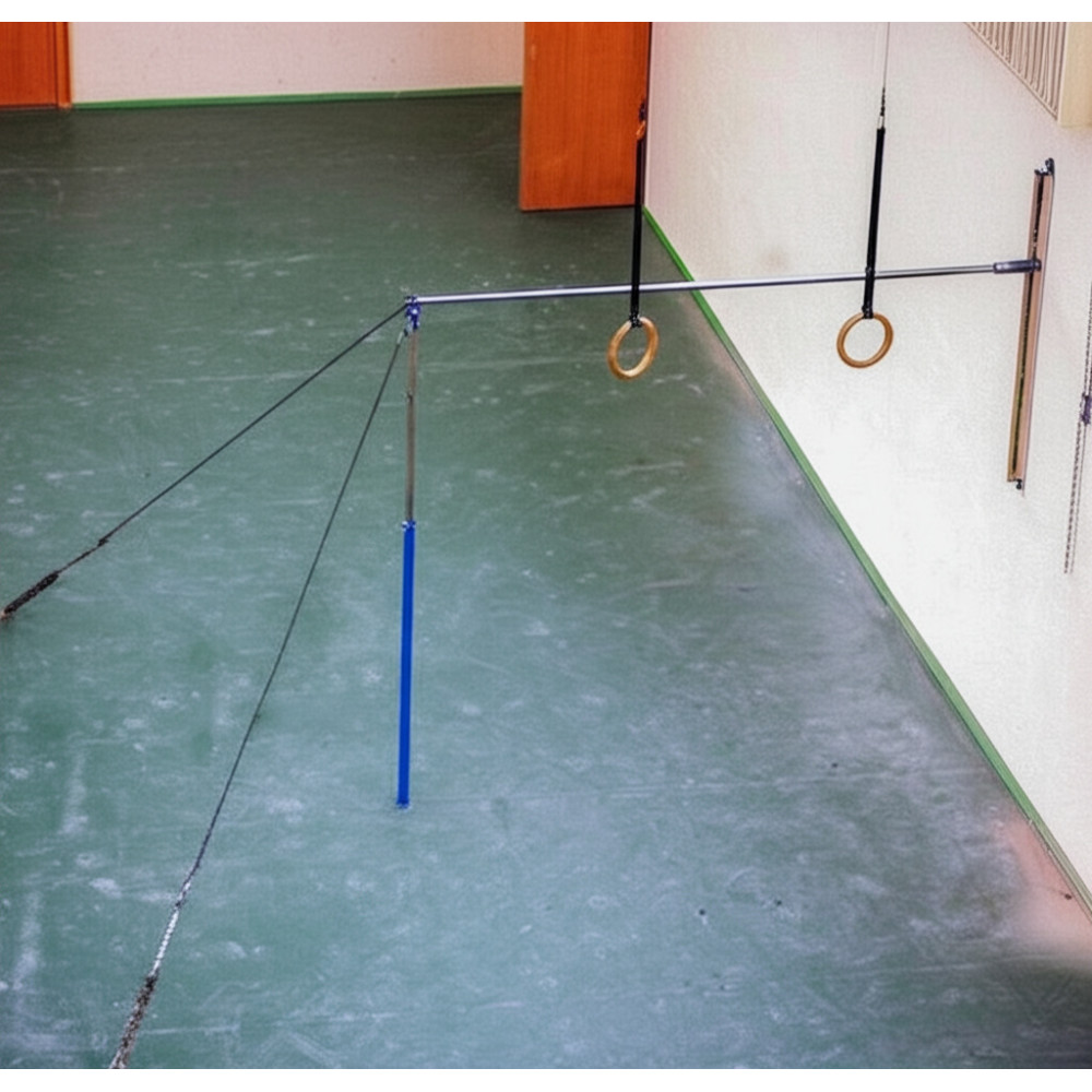Турник (перекладина) к стене на растяжках используется для проведения занятий и тренировок по спортивной гимнастике