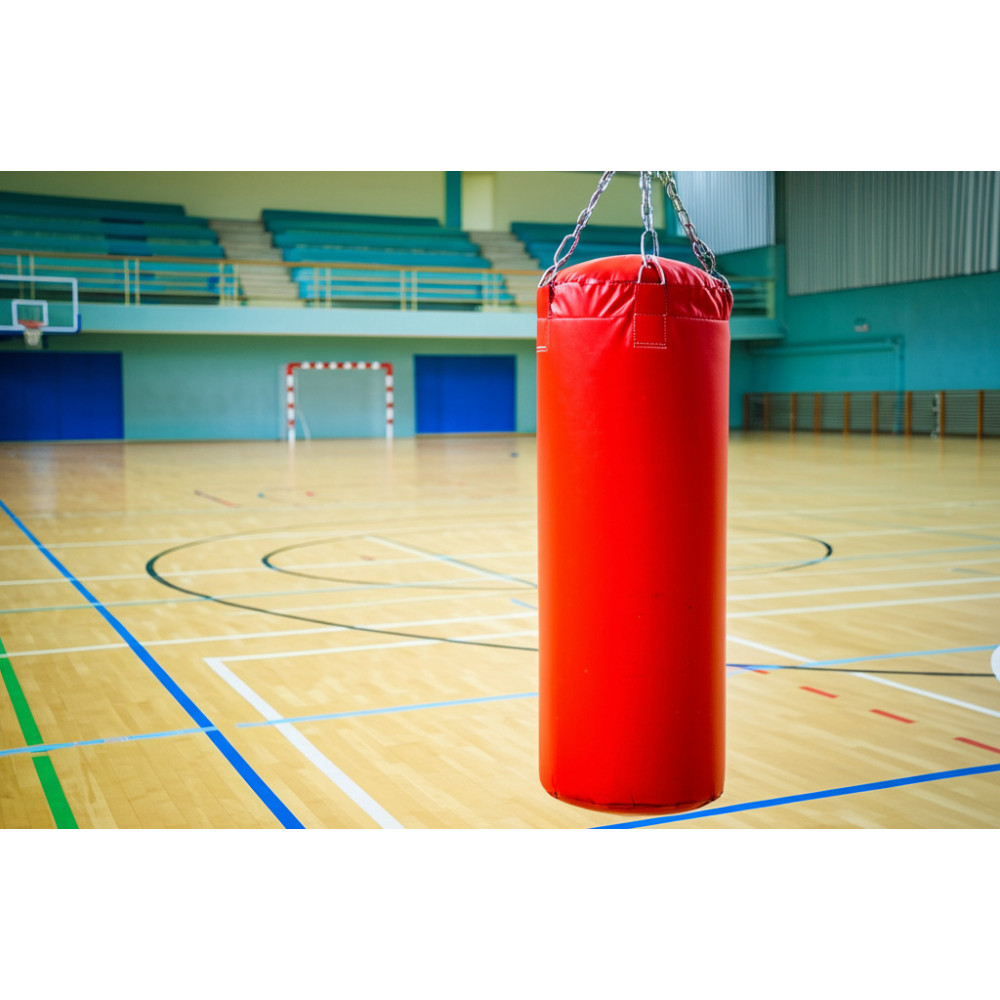 Боксерские мешки высотой от 60 до 120 см и весом от 15 до 55 кг, выполненные из тентовой ткани и снабженные удобной цепью.