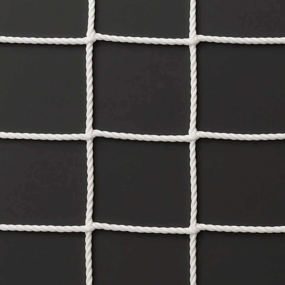 Заградительная сетка размер ячеек которой равен 10х10 см. Это стандартные размеры защитных сеток, которые устанавливаются вокруг поля и служат как защита. Применяются и для детских площадок и также для игровых помещений. Там где требуется повышенная прочность оградительных ограждений мы рекомендуем вам эту сеть.