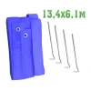 Разметка площадки для бадминтона размером 13,4х6,1 метров, выполненная из прочных голубых лент, включает в себя колышки для надежной фиксации.
