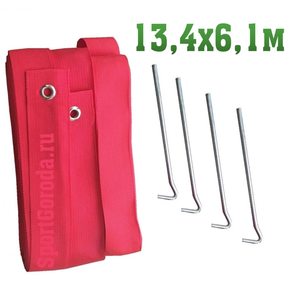 Лента разметки площадки для игры в бадминтон размерами 13,4х6,1 метров, состоящая из 4 прочных лент и 4 колышков для фиксации.
