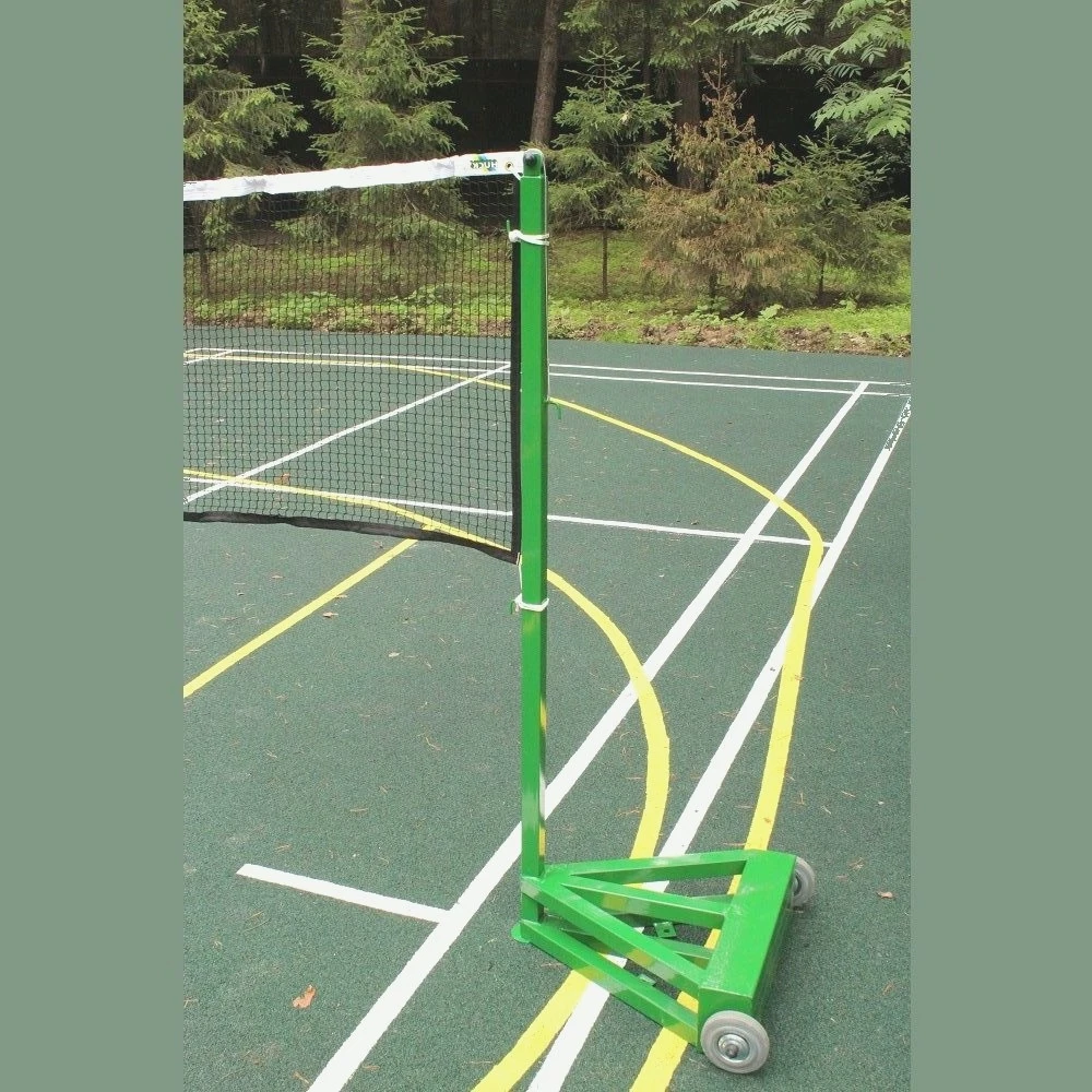 Стойки для бадминтона выполнены из металлического профиля, благодаря чему обладают высокой прочностью и долговечностью. Они мобильные и не требуют крепления к полу, что делает их удобными для использования в различных условиях.