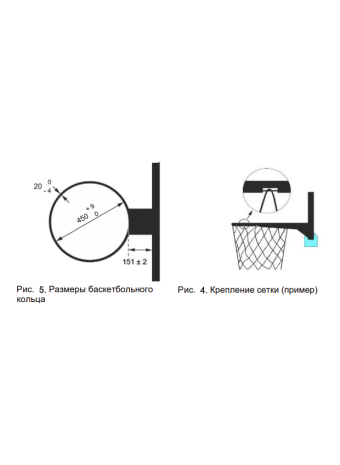 | Диаметр баскетбольного кольца | 450 мм (внутренний) |