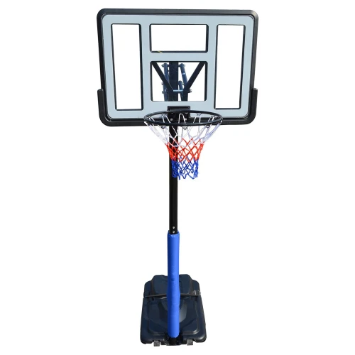 Подвижная баскетбольная стойка STAND44PVC1 с размерами 110х75 см, основанием для наполнения водой или песком и регулируемой высотой.