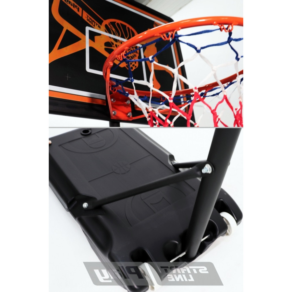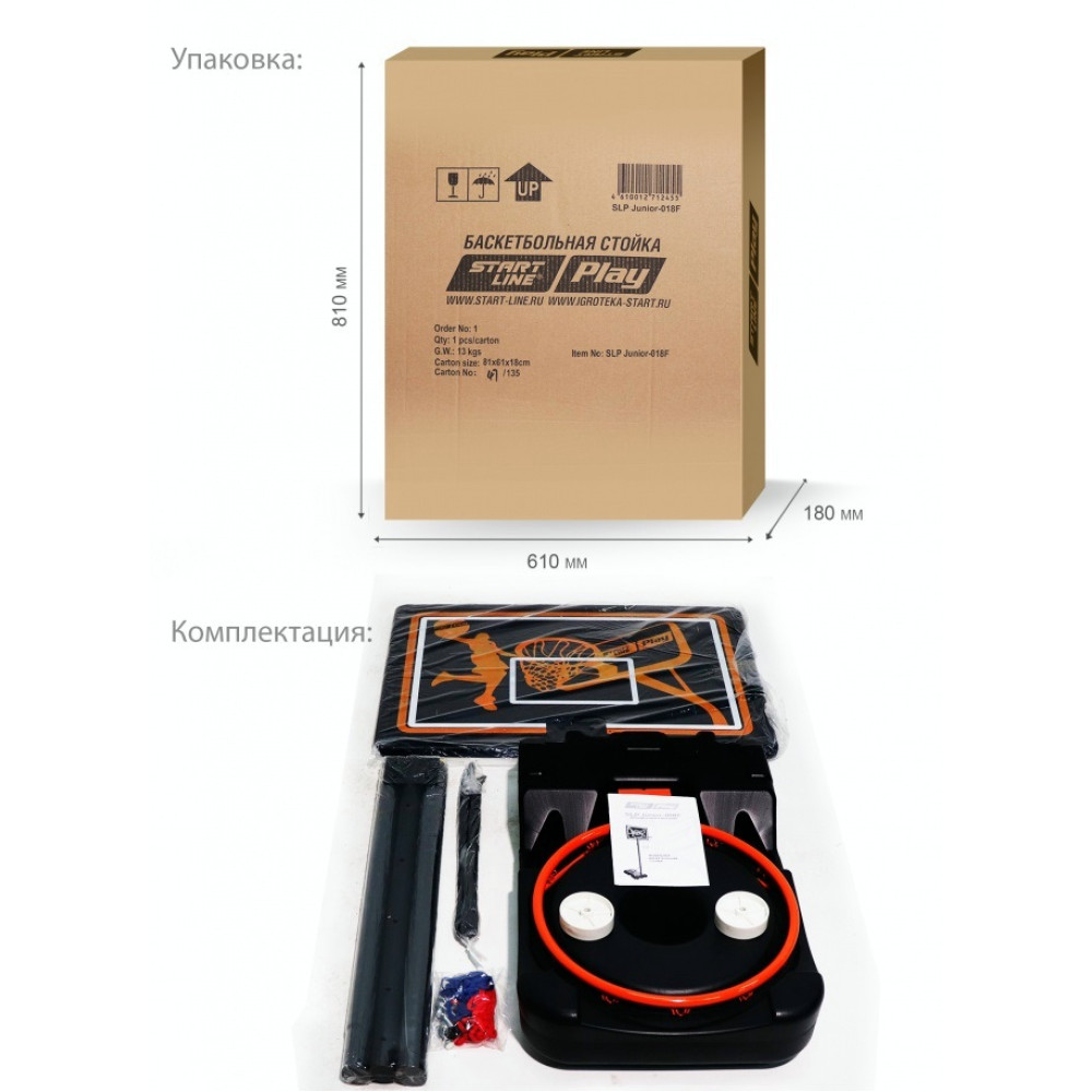 Мобильная баскетбольная стойка SLP Junior-018F от Start Line Play включает в себя полую базу, которая должна быть заполнена для утяжеления (рекомендуется песком), регулируемый по высоте щит, баскетбольную корзину. Высота от 165 до 210 см. Размер щита 58 х 80 см
