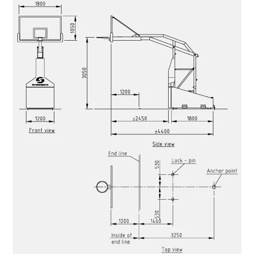 - Передвижная, складная. Вынос 245 см. Оснащена динамической подъемной конструкцией, щитом из закаленного стекла, кольцом (пружинит по всему периметру) и прочной сеткой.