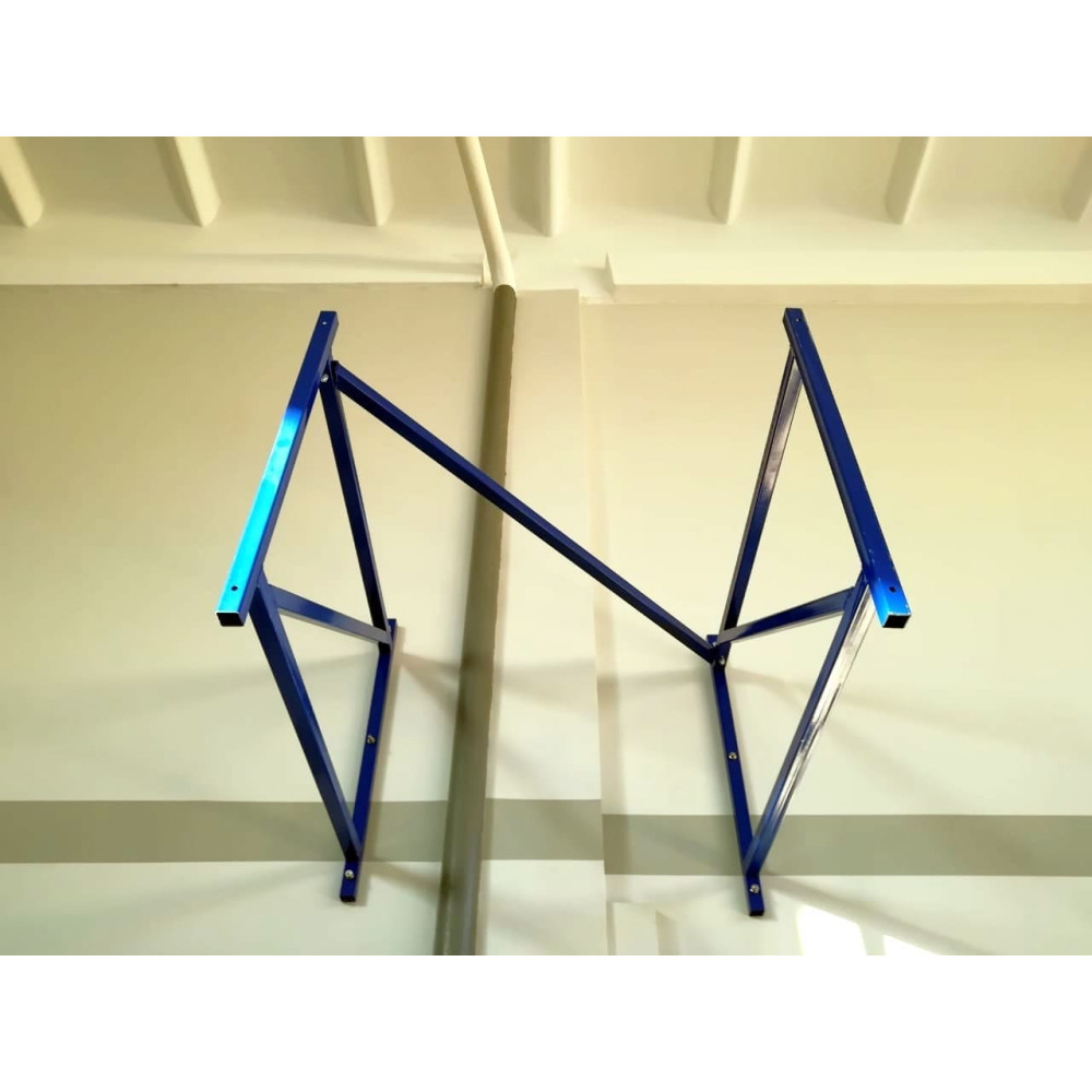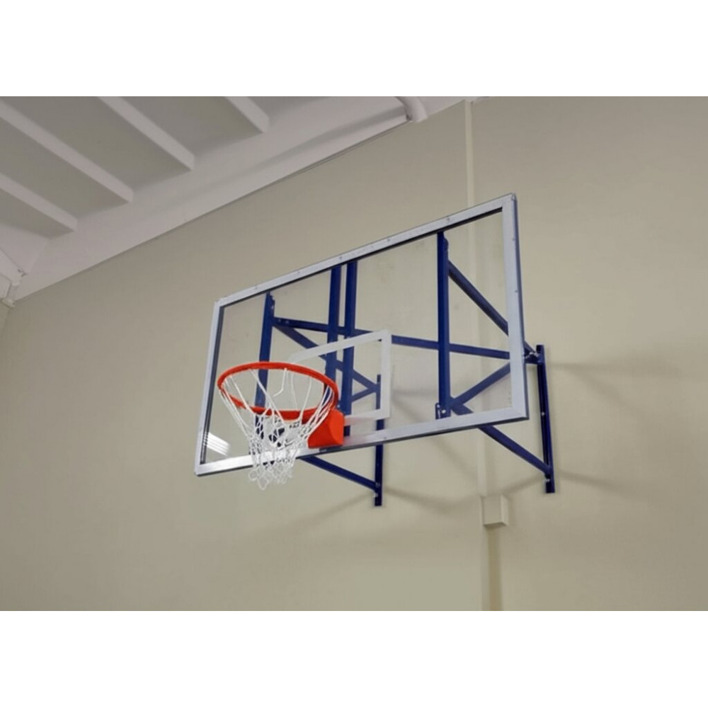 Данная настенная ферма выполнена из прочного стального профиля размером 40x40 мм, что обеспечивает ее устойчивость и долговечность. Конструкция состоит из двух рам и соединительного элемента, что позволяет надежно фиксировать баскетбольный щит в любом спортивном учреждении или на открытых площадках.