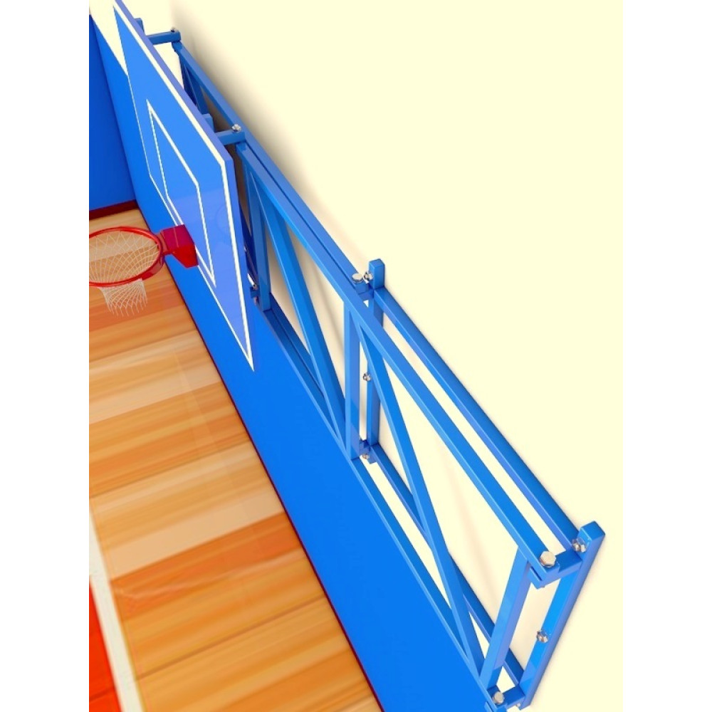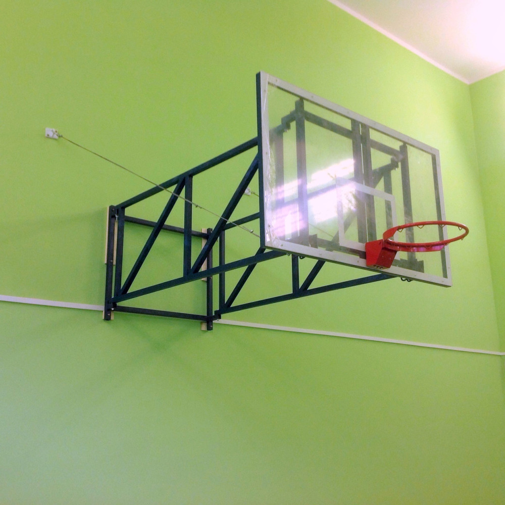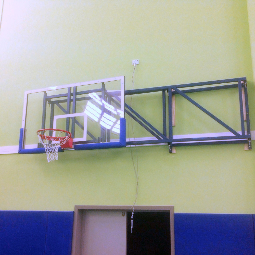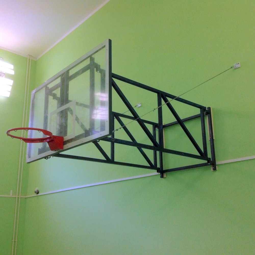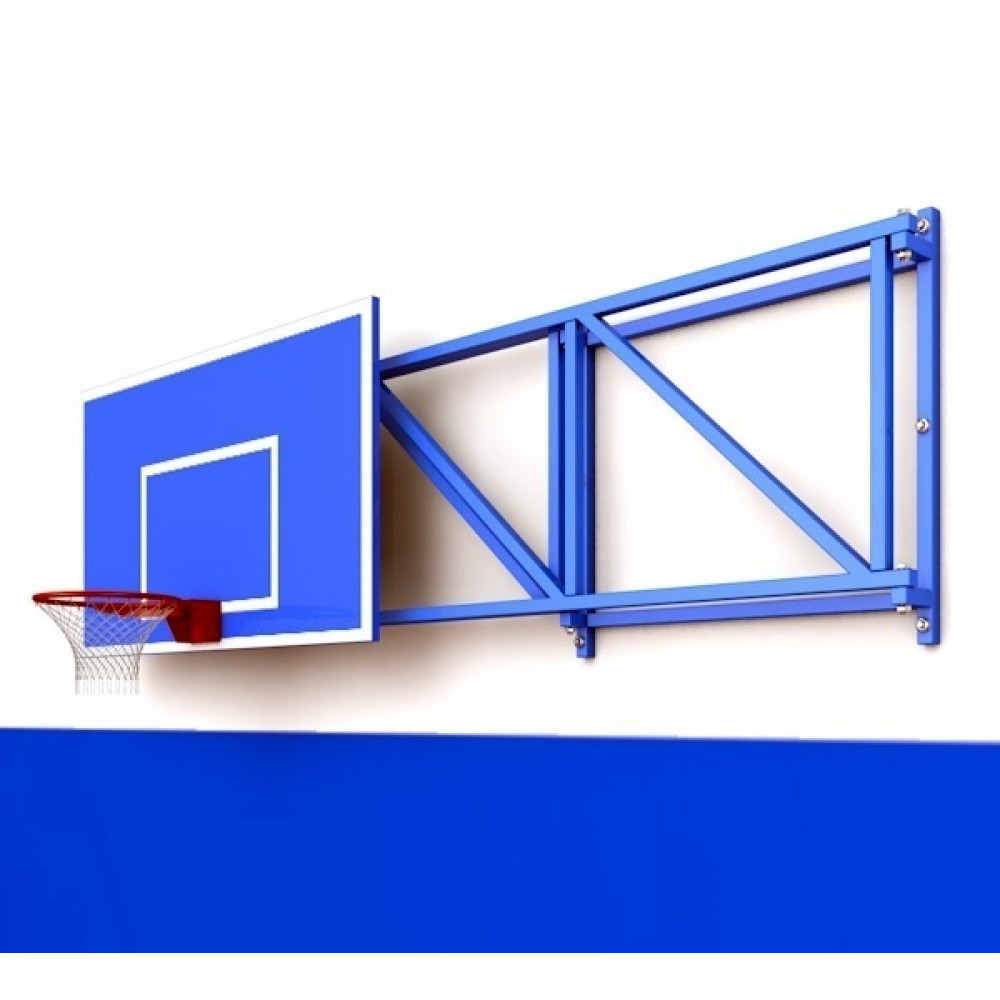 Ферма предназначена для установки баскетбольного щита и имеет вынос 2000 мм. Конструкция выполнена из стального профиля (40x40 мм) и фиксируется на стене, что обеспечивает стабильность. Ферма состоит из двух рам с подвижным основанием, что позволяет ей быть складной.