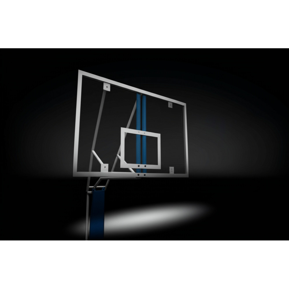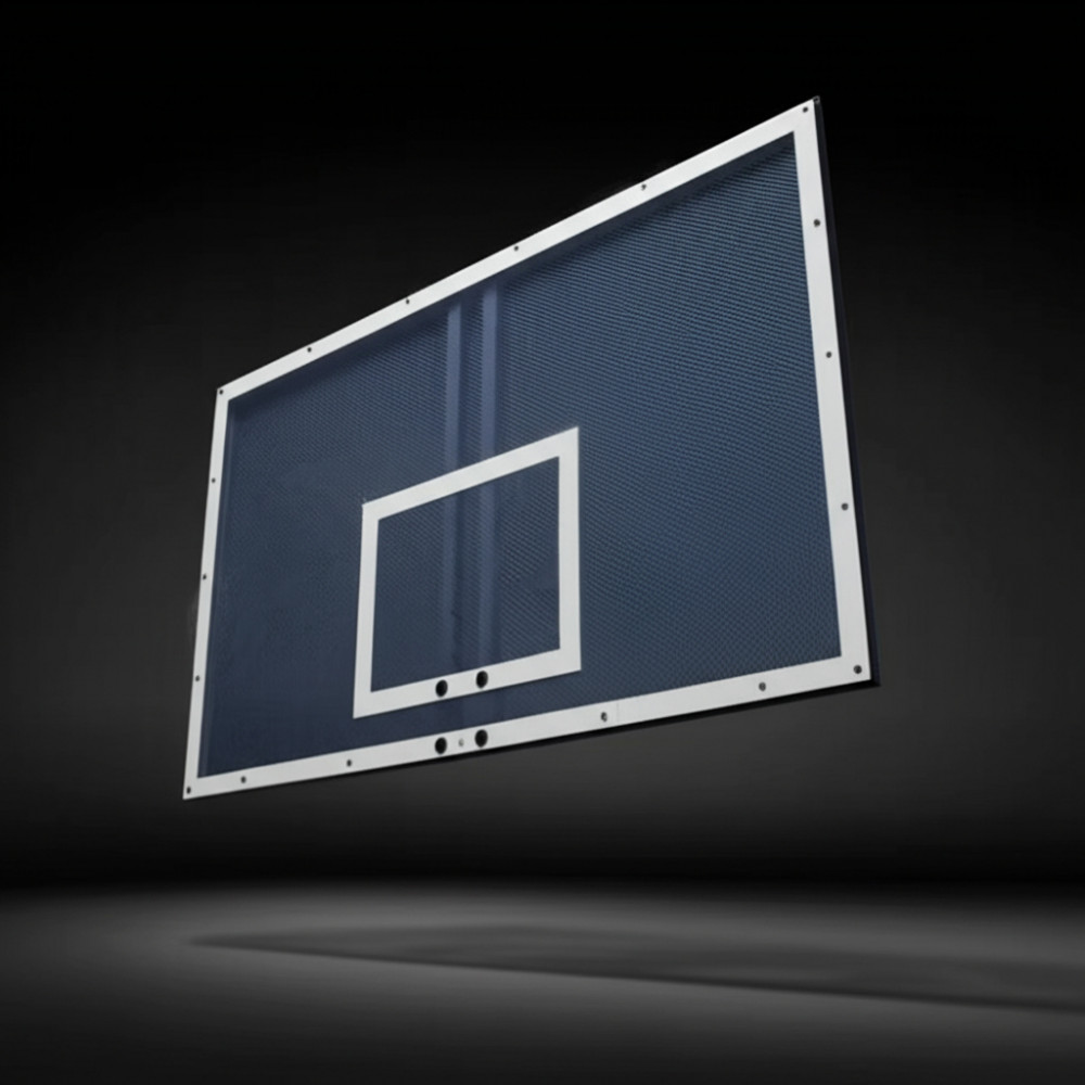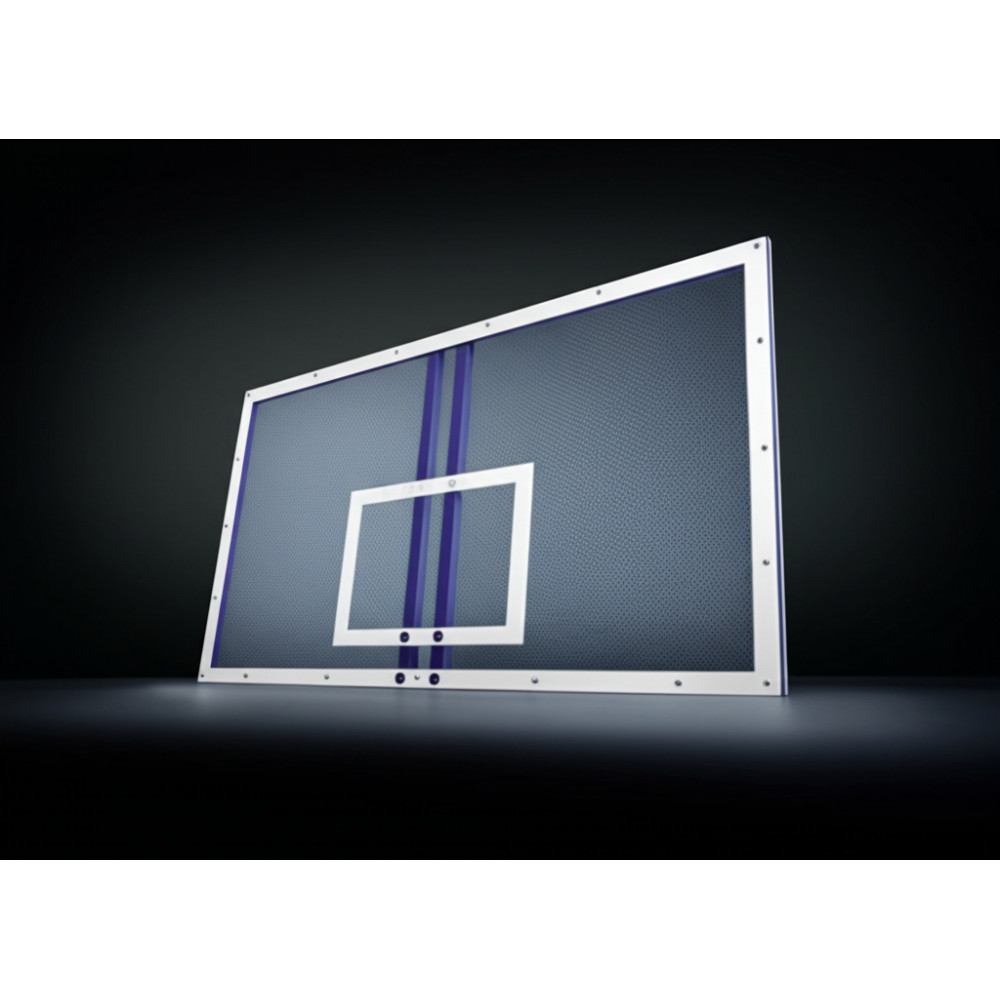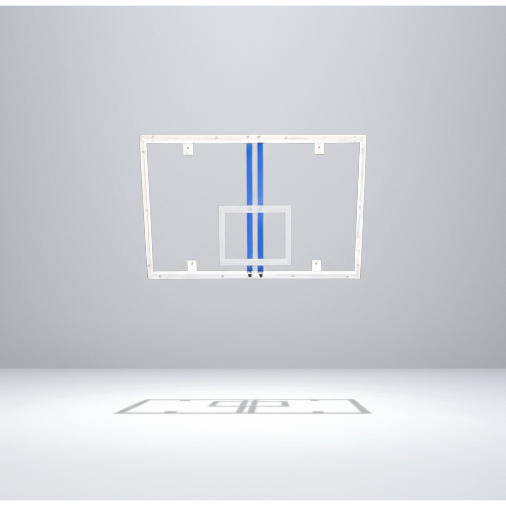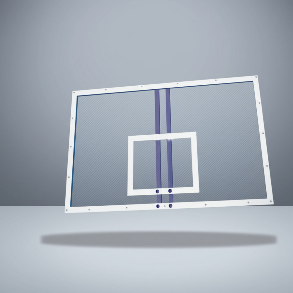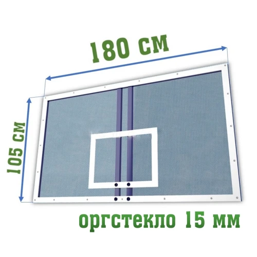 В производстве данного щита используется цельное противоударное акриловое оргстекло повышенной толщины 15 мм, рама изготовлена из металлического профиля 40х40мм и имеет монтажные отверстия и "клыки" для крепления к ферме или стойке а также отверстия для крепления баскетбольного кольца. Место под баскетбольное кольцо идет размерами 100Х110 мм. Размер щита 1800 x 1050 мм, что соответствует требованиям FIBA.