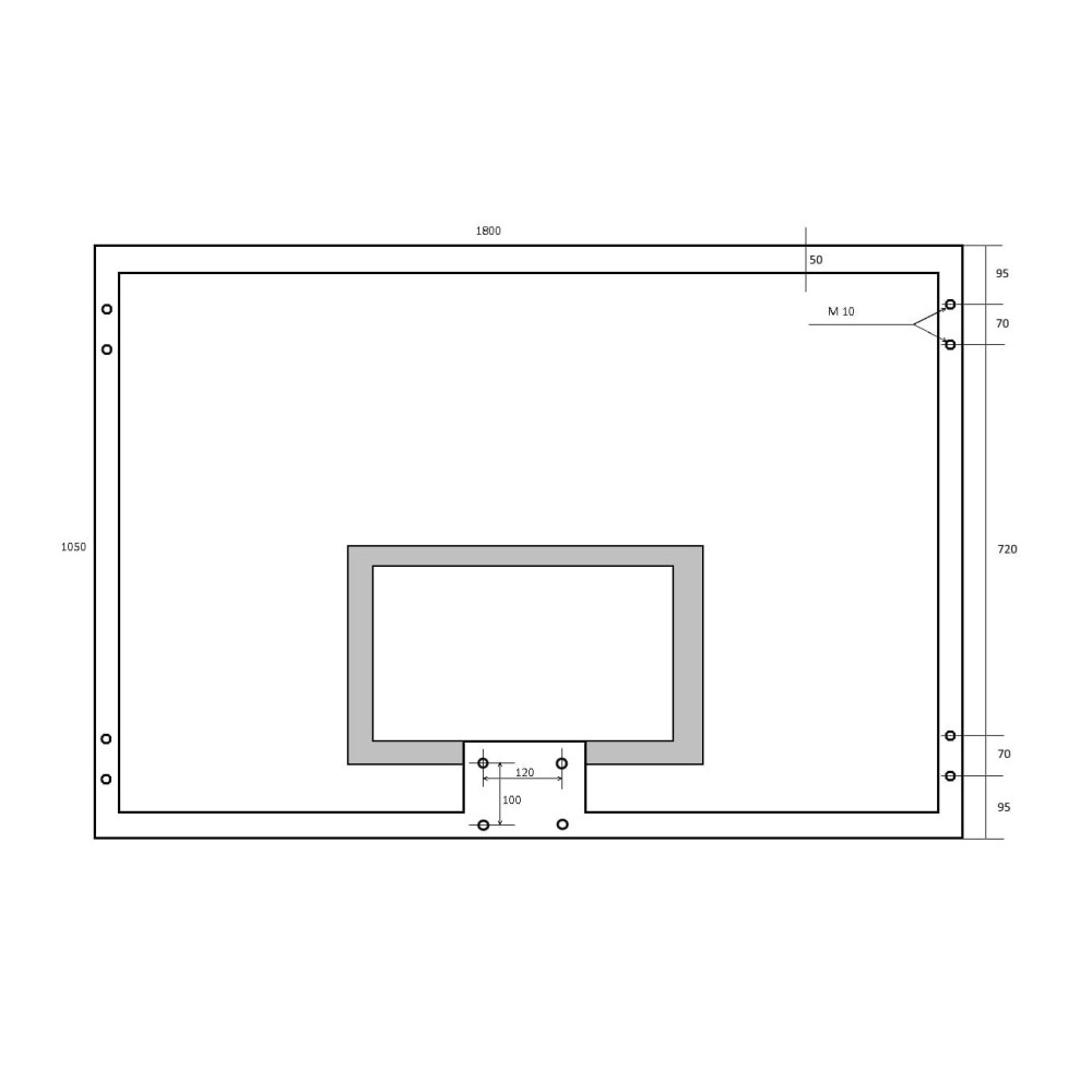 Баскетбольное кольцо крепится к щиту при помощи болтов М10, расстояние между отверстиями - 100x110мм.