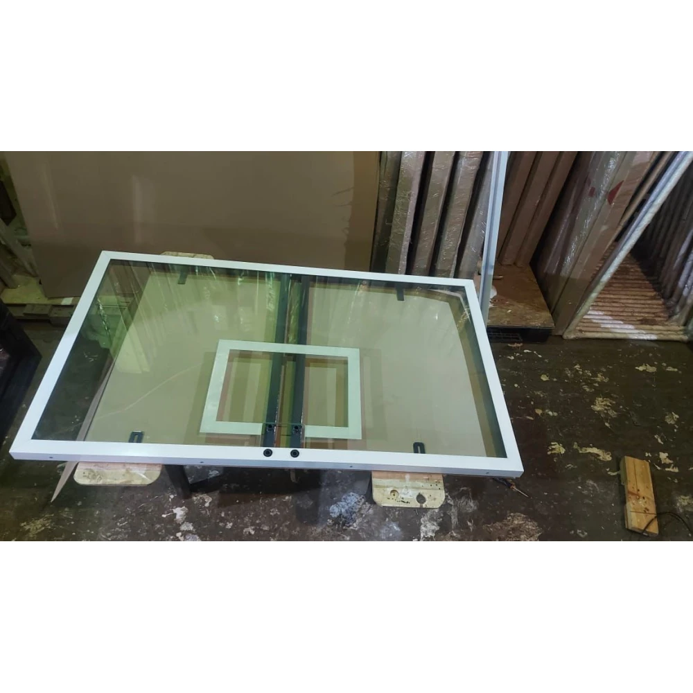 Баскетбольный щит из закалённого стекла (10 мм) и металлической рамой (4x4 см) для установки на улице и в закрытых помещениях.