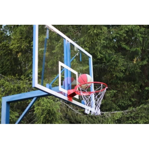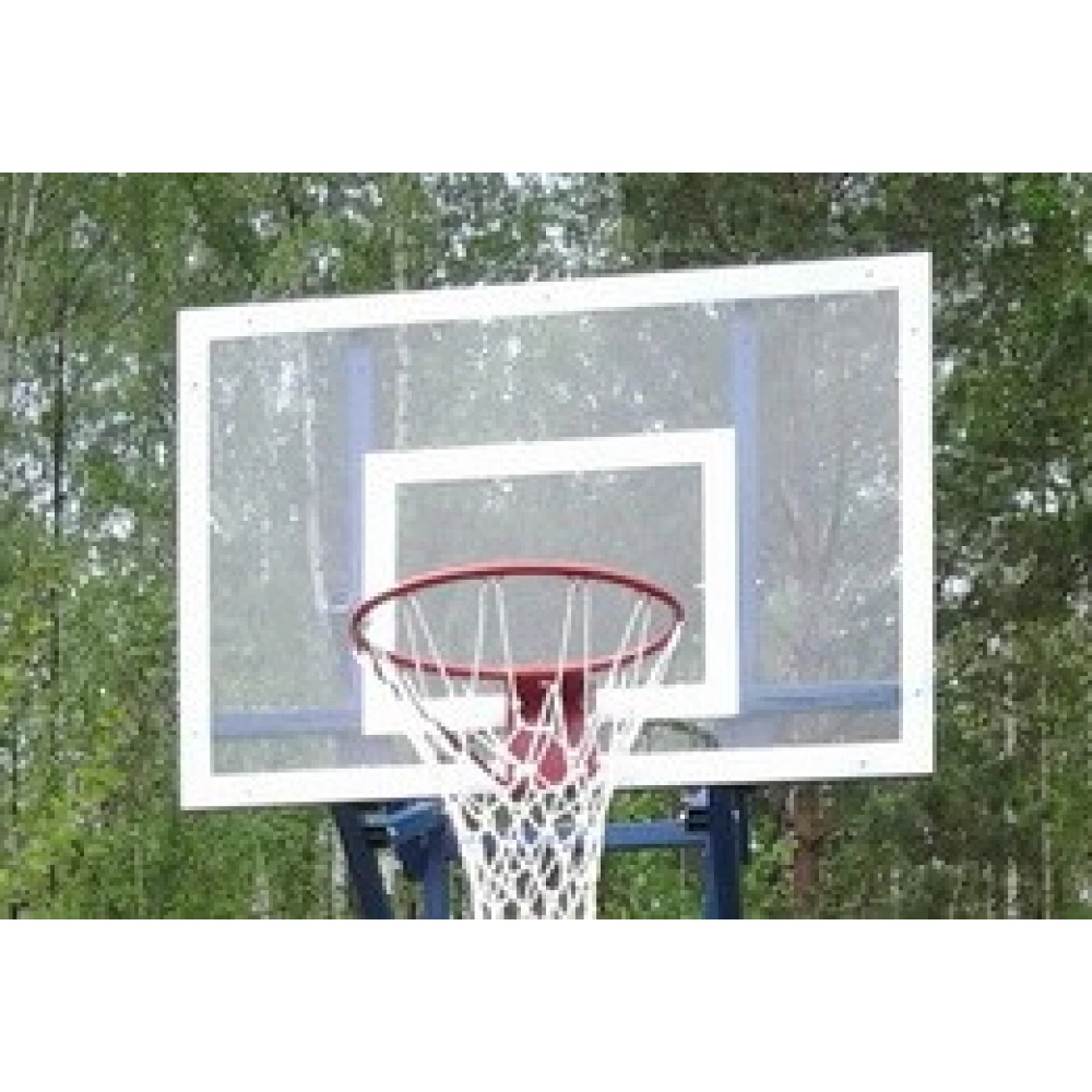 Щит тренировочный для баскетбола из оргстекла размером 120х90 см на металлической раме, предназначен для использования в спортивных залах и на открытых площадках.
