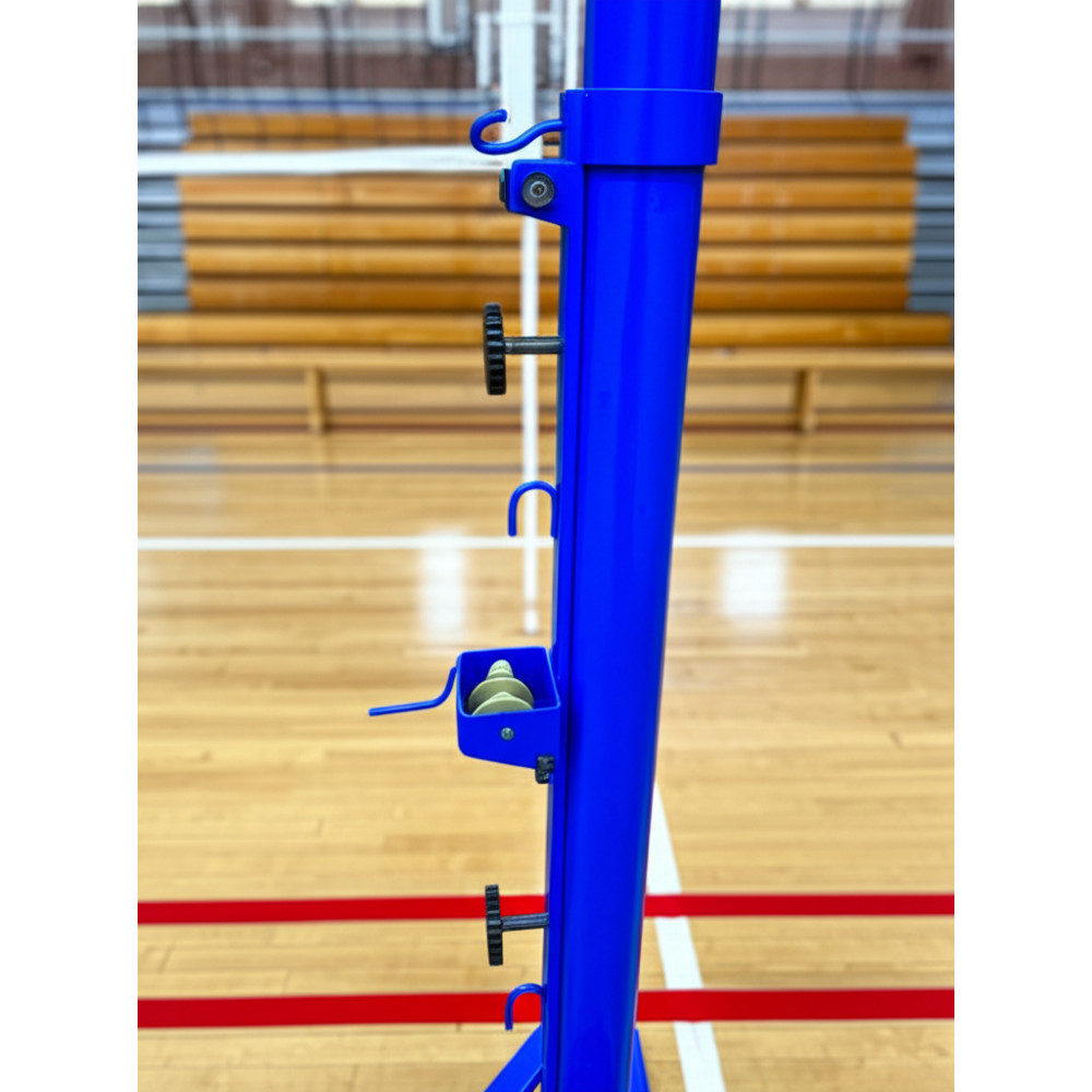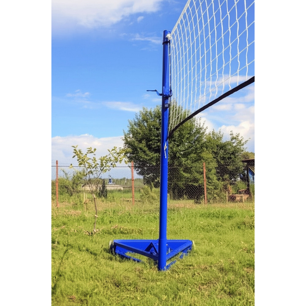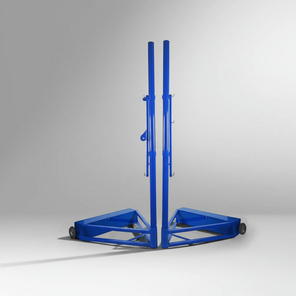 Мобильные стойки идеально подходят для использования в различных спортивных условиях: от закрытых залов до уличных площадок и пляжей. Каждая стойка оснащена колёсами на противовесах, что облегчает транспортировку и установку.