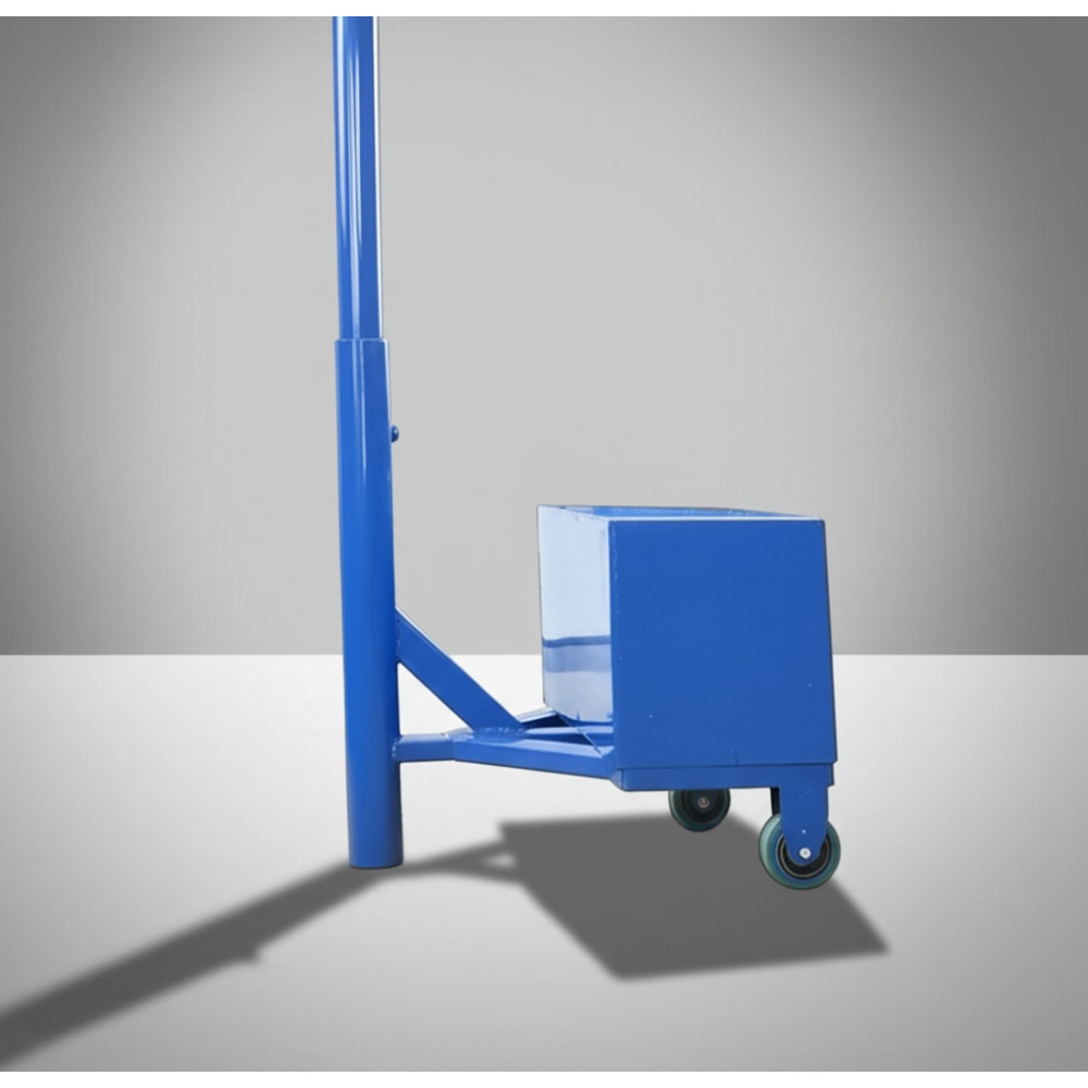 В комплект входят две стальные стойки с регулировкой по высоте и системой натяжения сетки. Для облегчения транспортировки система оснащена колесами. Специальные ручки обеспечивают безопасную установку и снятие груза. В комплект входит: