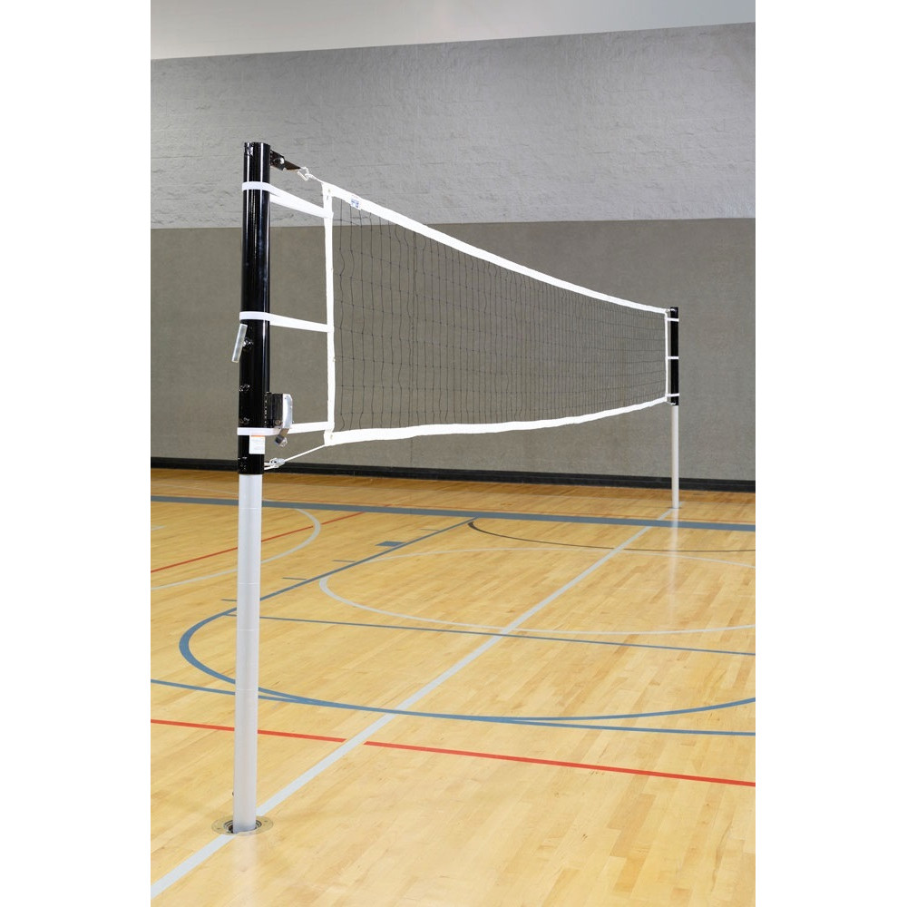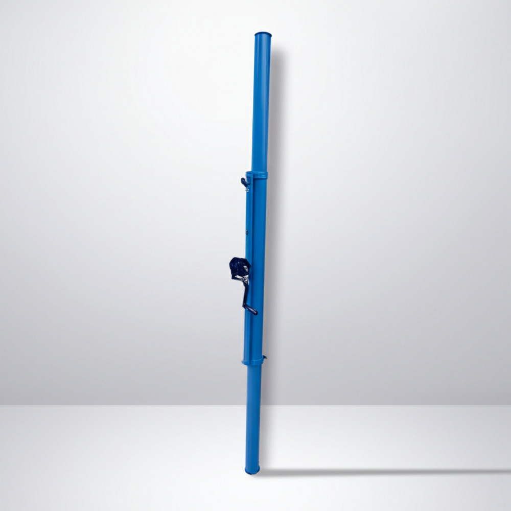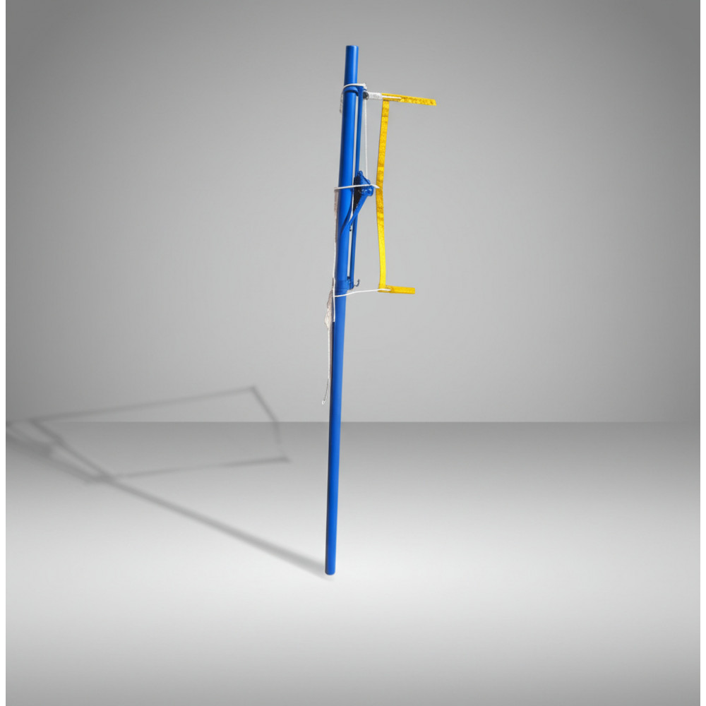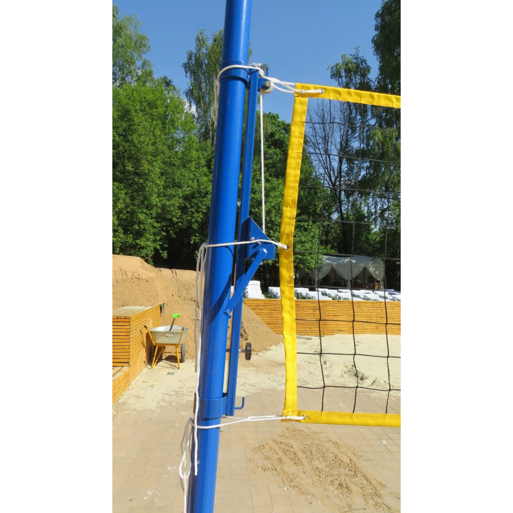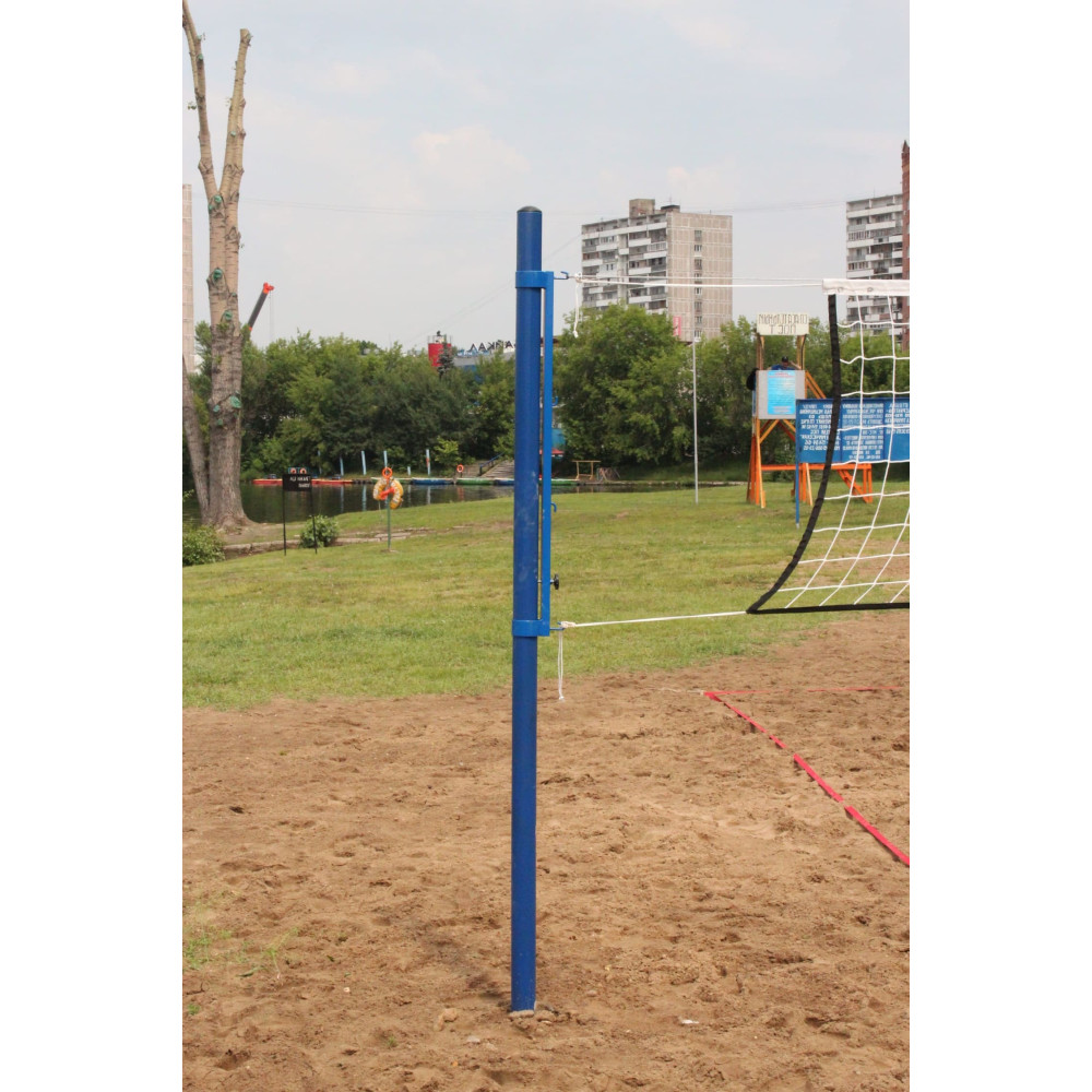 Универсальные волейбольные стойки высотой 2,55 м, с системой натяжения и стаканами, предназначенные для различных видов спорта.