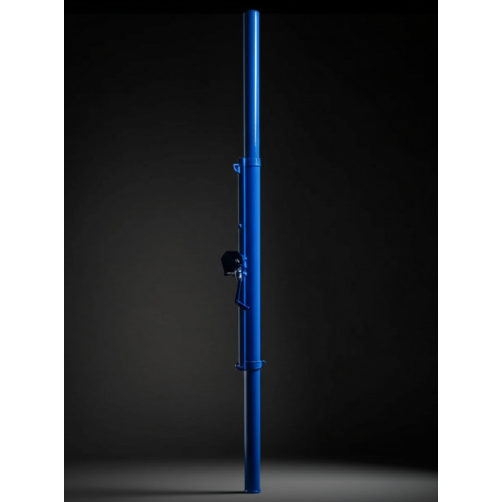 Натяжная система стойки позволяет регулировать высоту, что делает конструкцию подходящей для различных видов спорта. Важно, что стаканы не нужно вынимать, они накрываются сверху крышками, что обеспечивает удобство при смене игры.