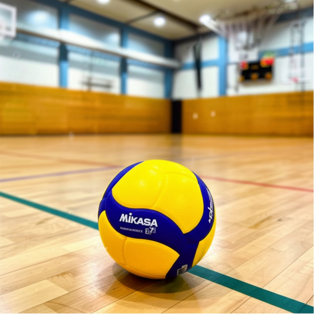 Волейбольный мяч Mikasa V200W - профессиональный мяч размера 5, весом 260-280 г, с желто-синей окантовкой, идеальный для соревнований и тренировок.