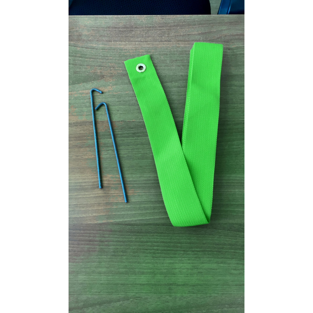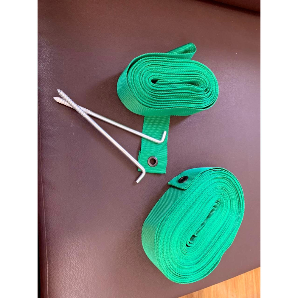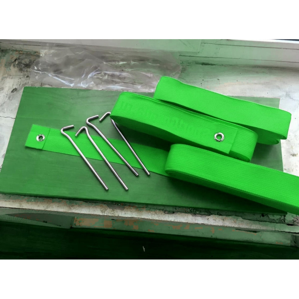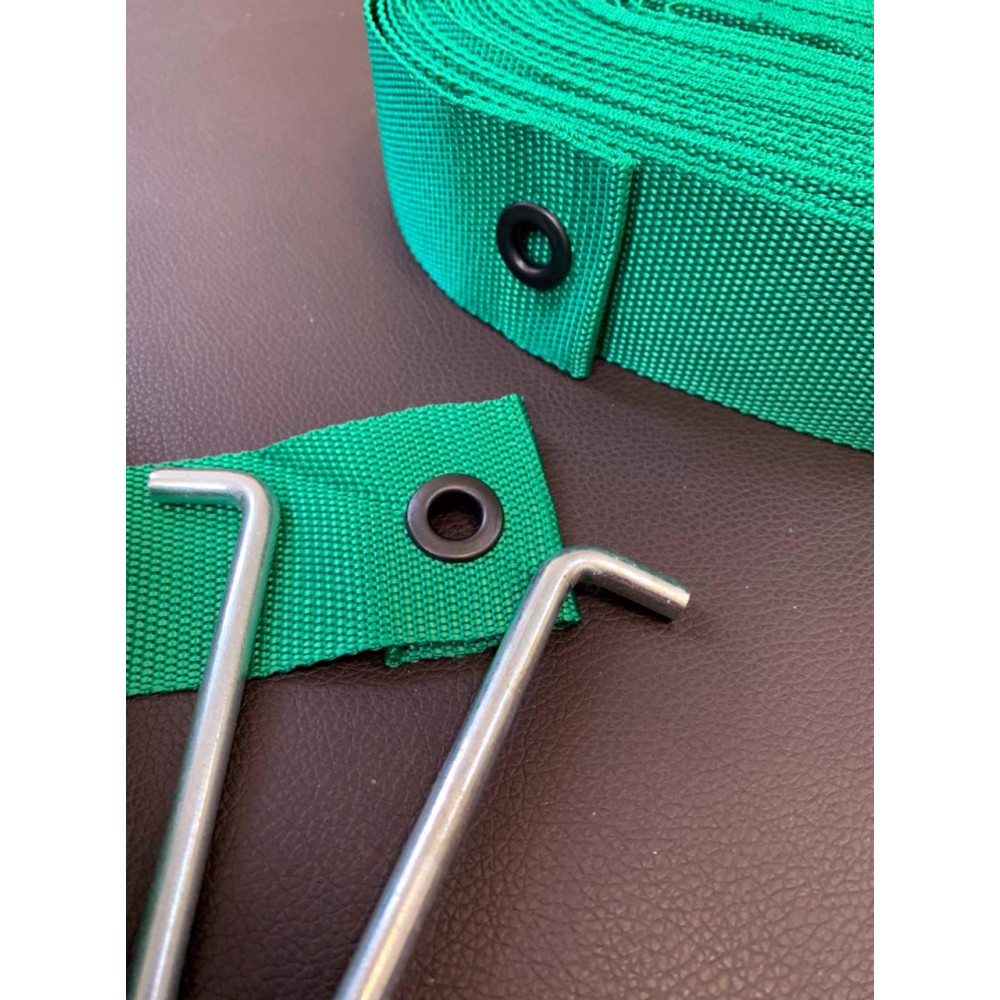 Комплект из 4 лент из прочного полиэстера зеленого цвета с люверсами и 4 металлических штырей для соединения для игры в пляжный волейбол.