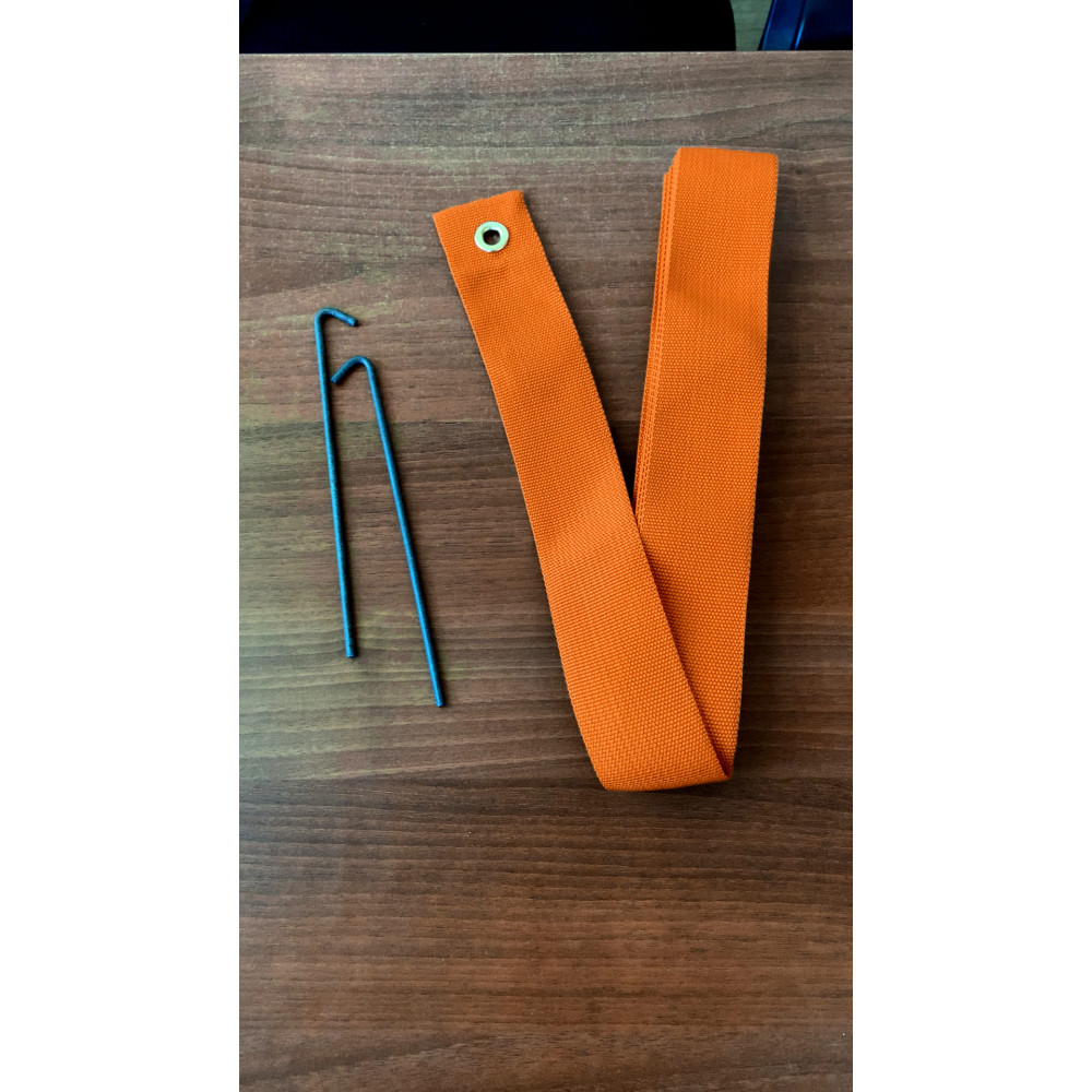 Комплект из 4 лент из прочного полиэстера оранжевого цвета с люверсами и 4 металлических штырей для соединения для игры в пляжный волейбол.