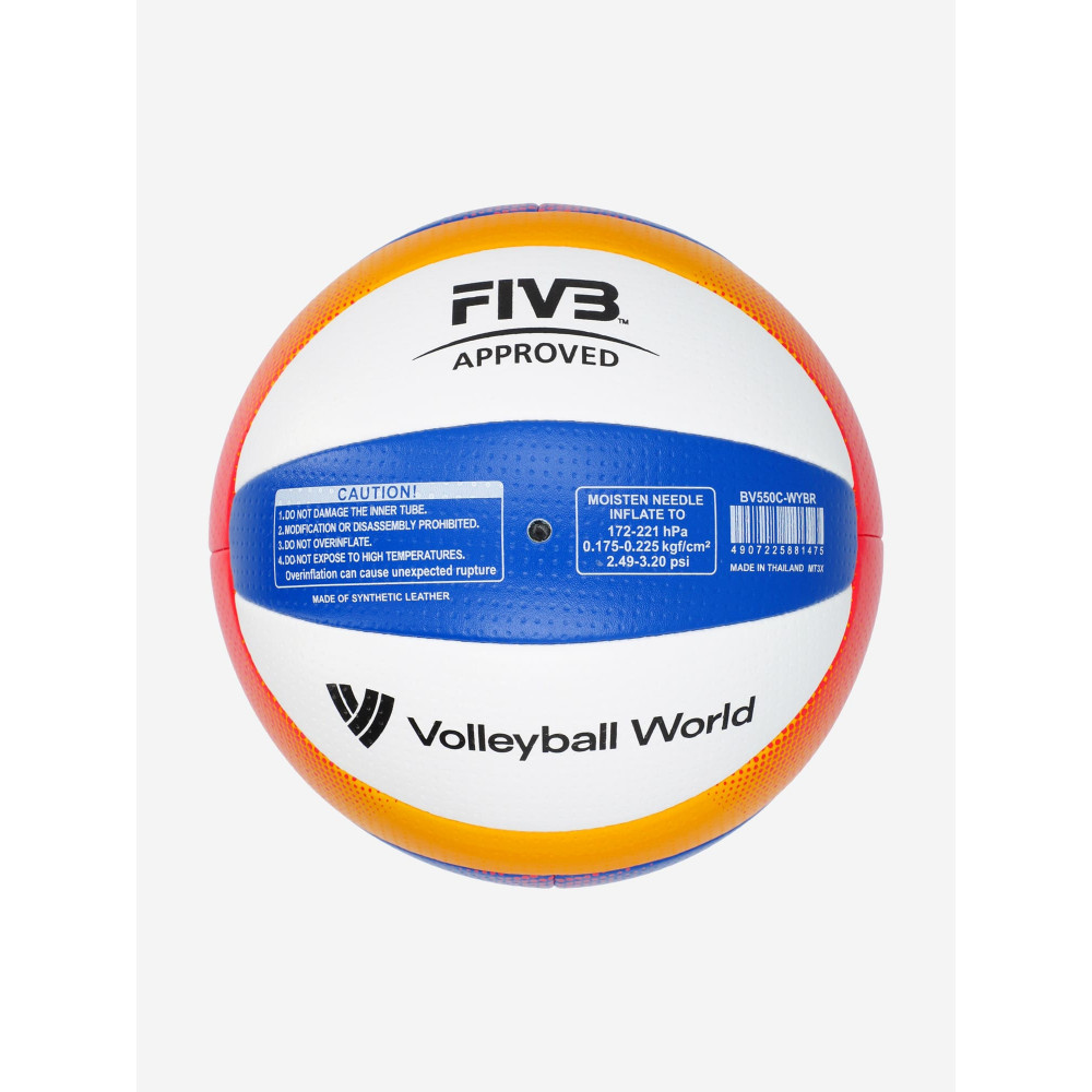 Волейбольный мяч Mikasa BV550C — официальный мяч FIVB для пляжного волейбола. Размер 5, вес 260–280 г, 10 сшитых панелей с улучшенным сцеплением и влагостойкой поверхностью. Идеален как для профессиональных соревнований, так и для тренировок на песке.