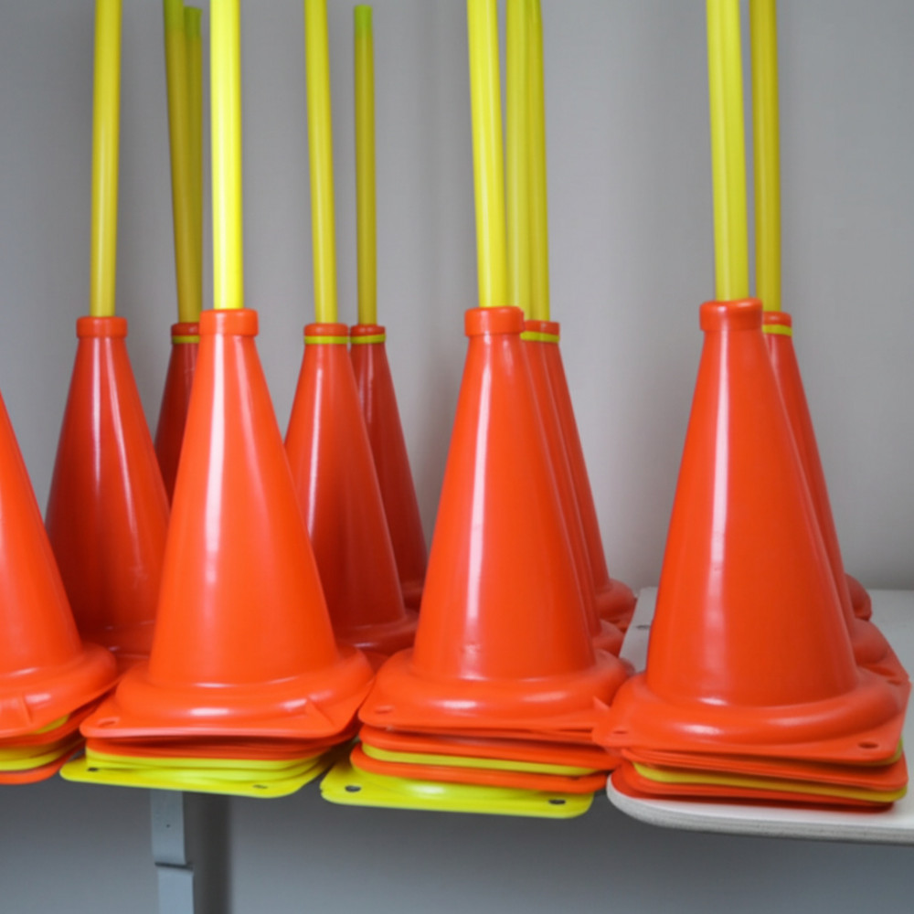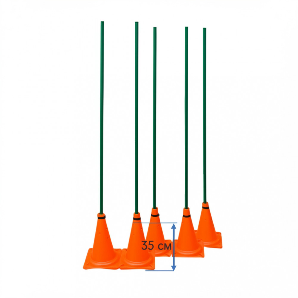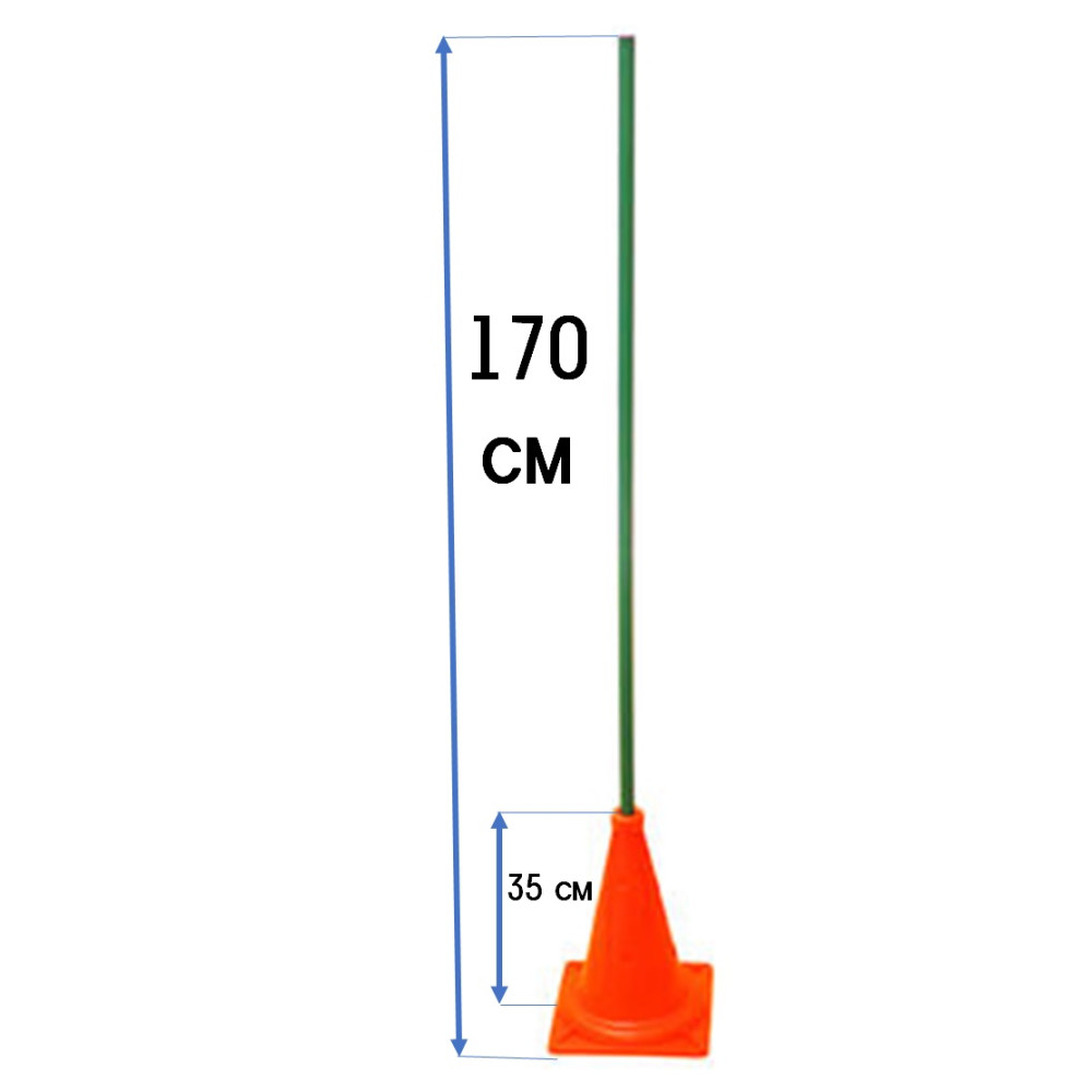 Стойки для обводки – это эффективный инструмент для тренировок, состоящий из конусообразного основания высотой 35 см и мягкой палки из ППЭ, достигающей 170 см.