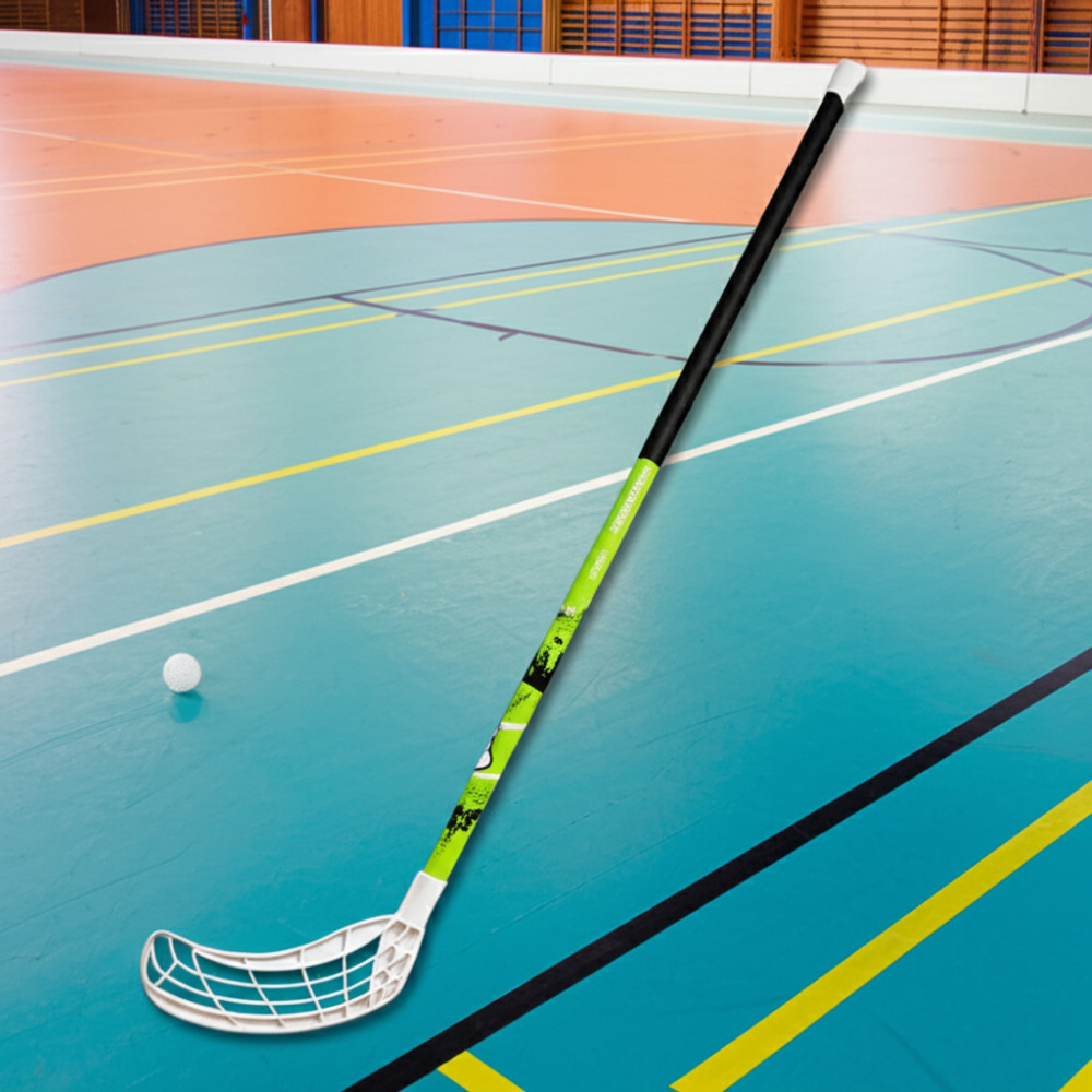 Эта клюшка сертифицирована IFF (Международной федерацией флорбола), что подтверждает её соответствие высоким стандартам. Ручка клюшки изготовлена из прочного материала - fiberglass (стекловолокно). Длина рукоятки составляет 950 мм, и её можно укоротить для удобства игрока.