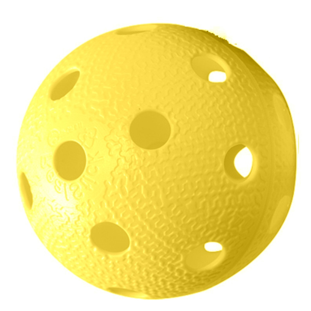 Мяч для флорбола желтый, выполненный из качественного пластика, с рельефной поверхностью, весом 23 грамма и диаметром 72 мм.