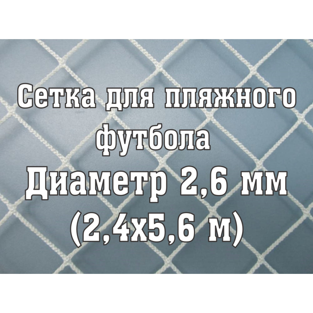 Сетки для пляжных ворот предназначены для футбольных матчей, имеют размер 5,6 м в длину и 2,4 м в высоту, выполнены из нити диаметром 2,6 мм.