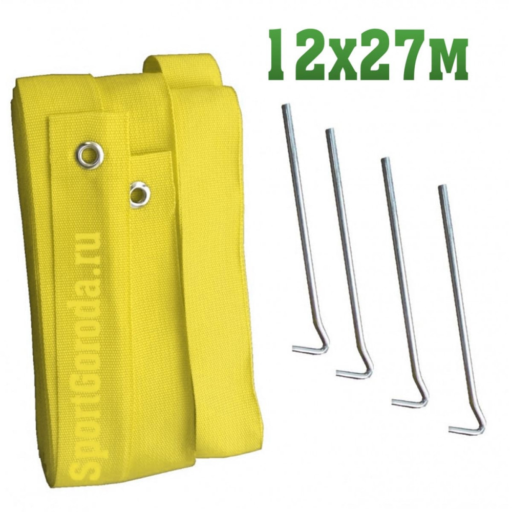 Разметка для пляжного футбола размером 12х27 метров включает в себя ленты желтого цвета для обозначения игровых границ.