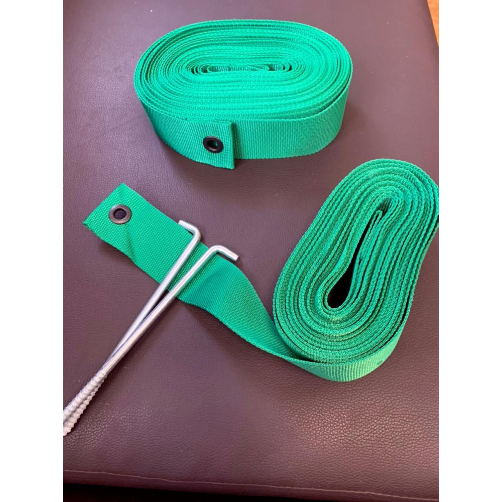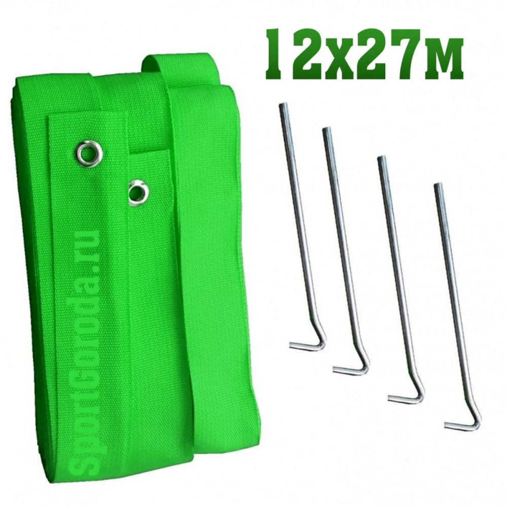 - Комплектация: 4 ленты (2 - 12 м и 2 - 27 м) и 6 колышков для крепления.
