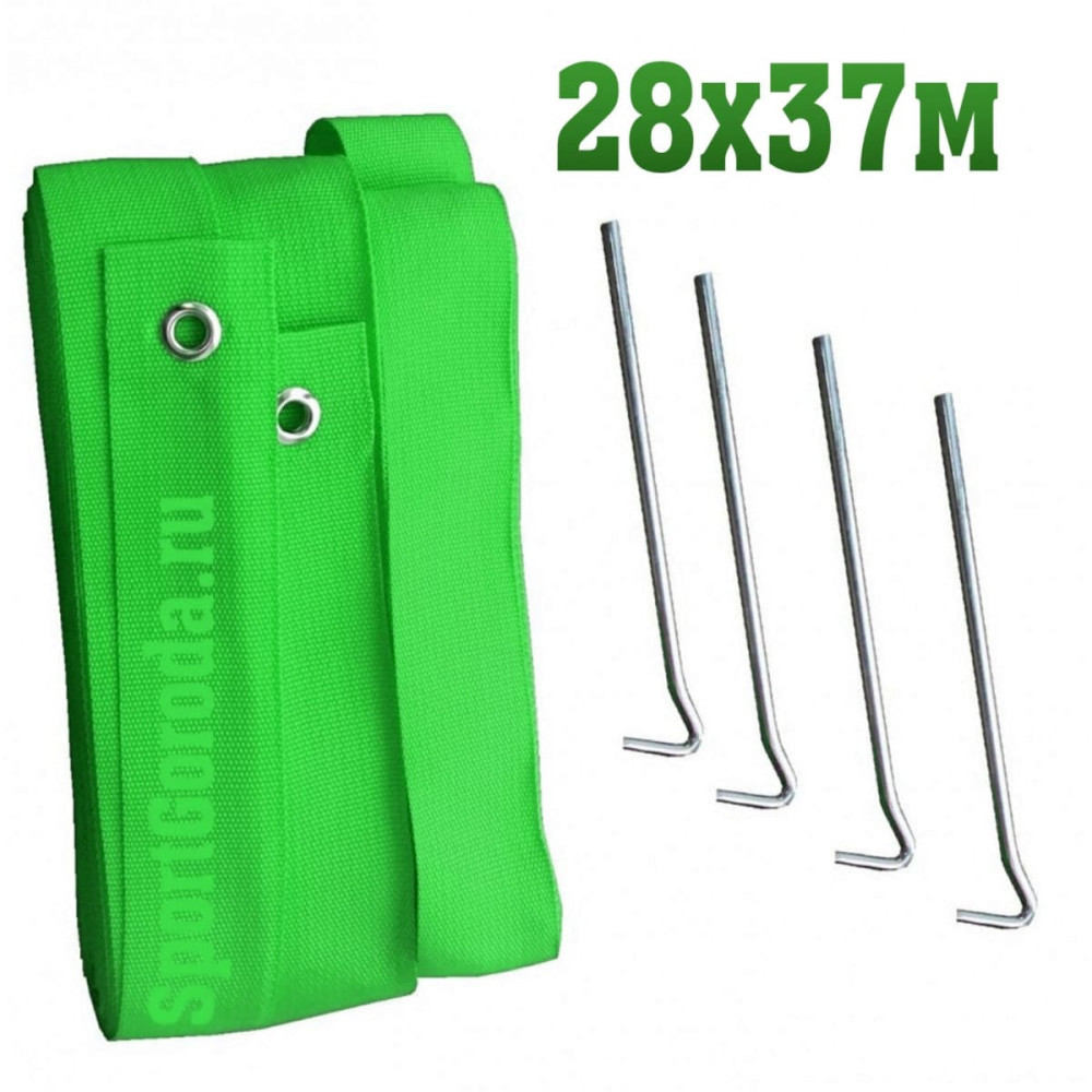 Разметка для пляжного футбола зеленого цвета размером 28х37 м включает в себя 4 ленты и 4 металлических крепления, обеспечивая четкие границы игровой площадки.