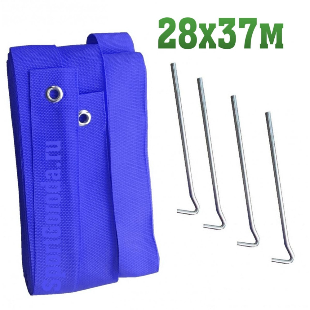 Разметка для пляжного футбола размером 28х37 м синего цвета состоит из 4 лент и 4 металлических креплений, обеспечивая четкое ограничение игровой зоны.