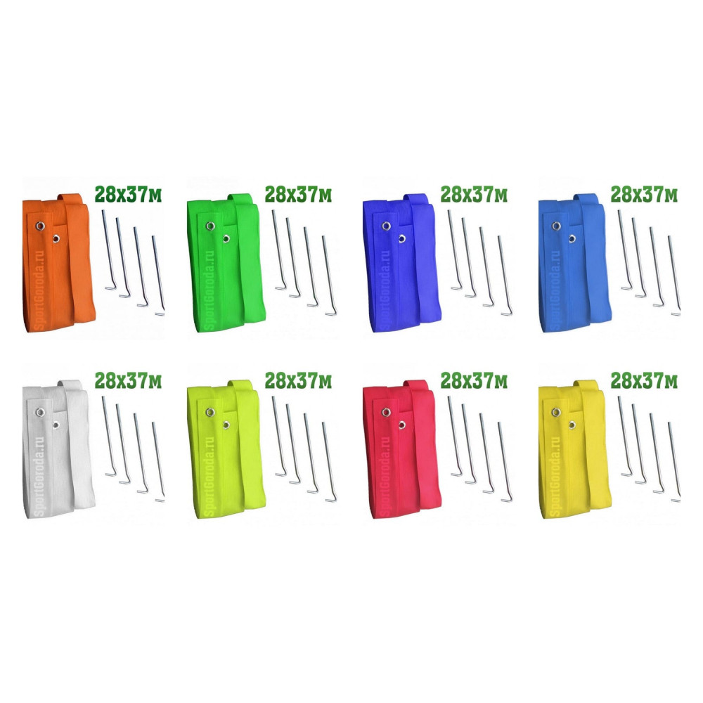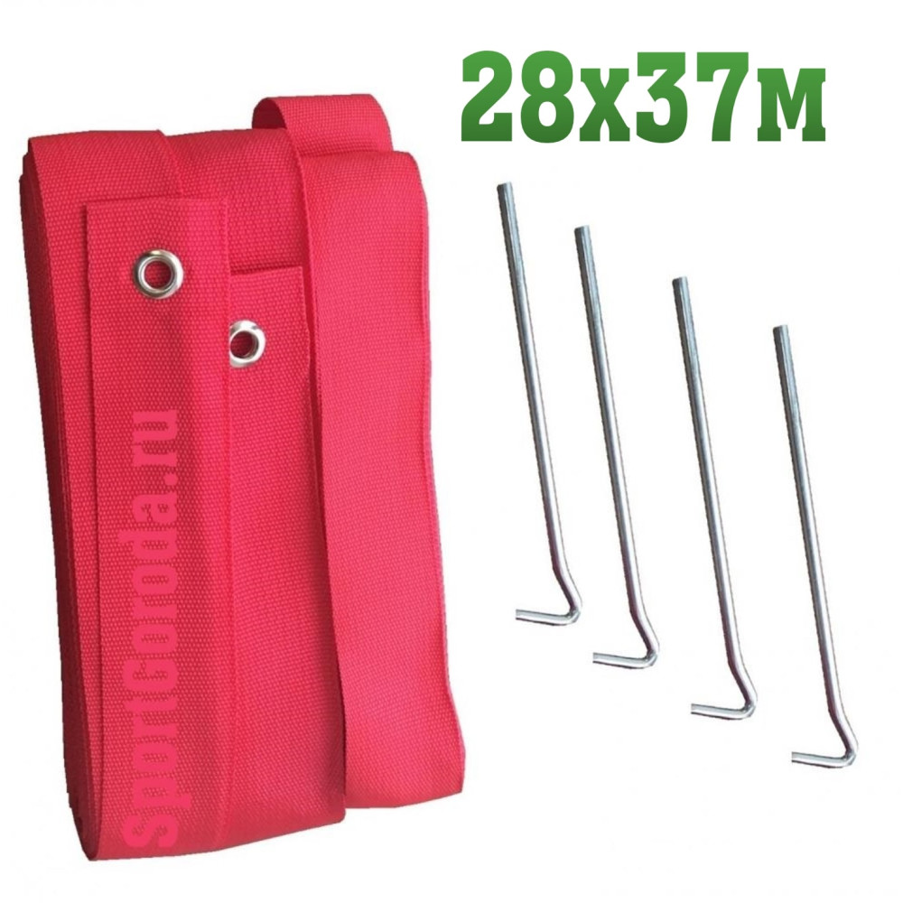 Разметка для площадки пляжного футбола размерами 28х37 м включает 4 прочные ленты и 4 металлических крепления, обеспечивая четкое ограничение игрового поля.