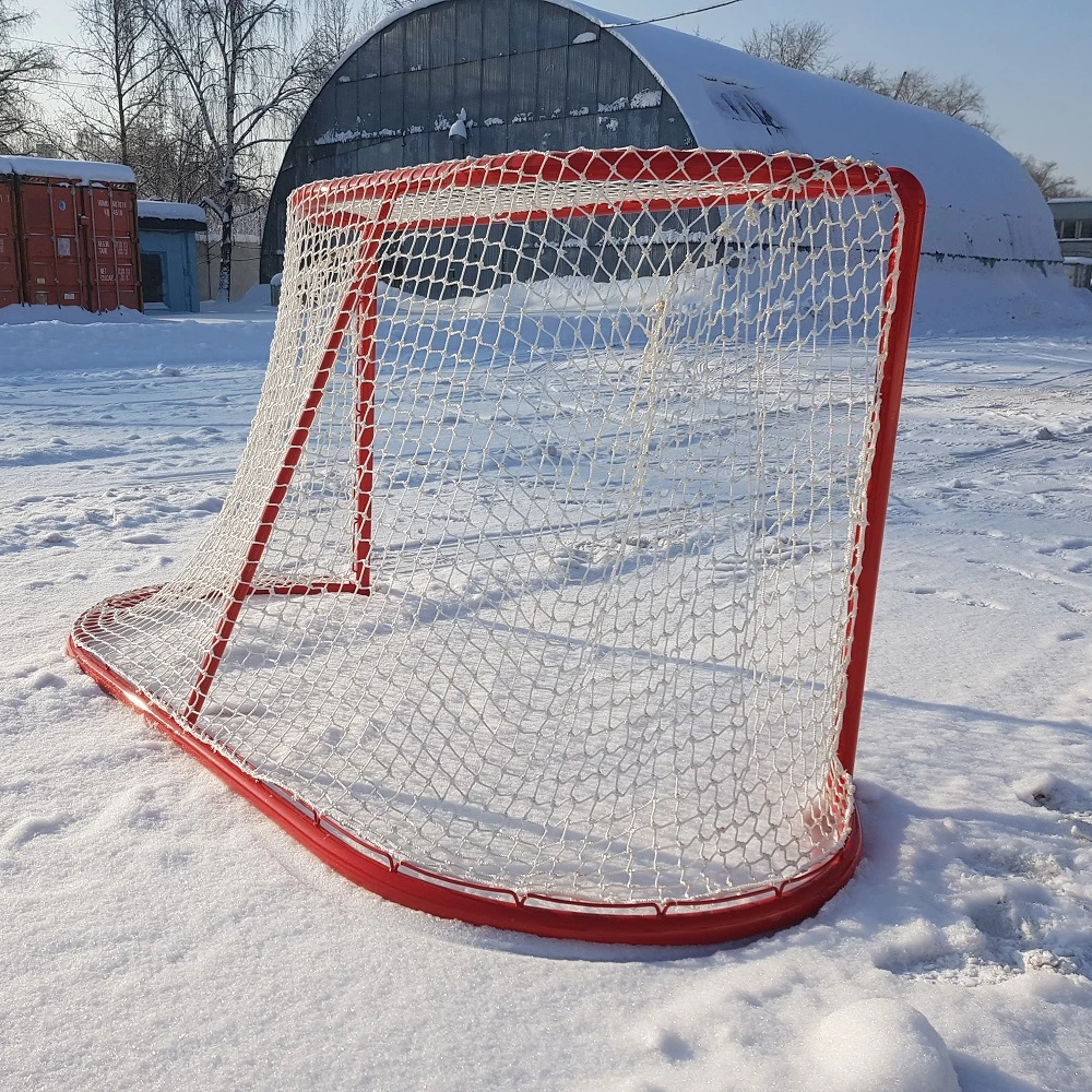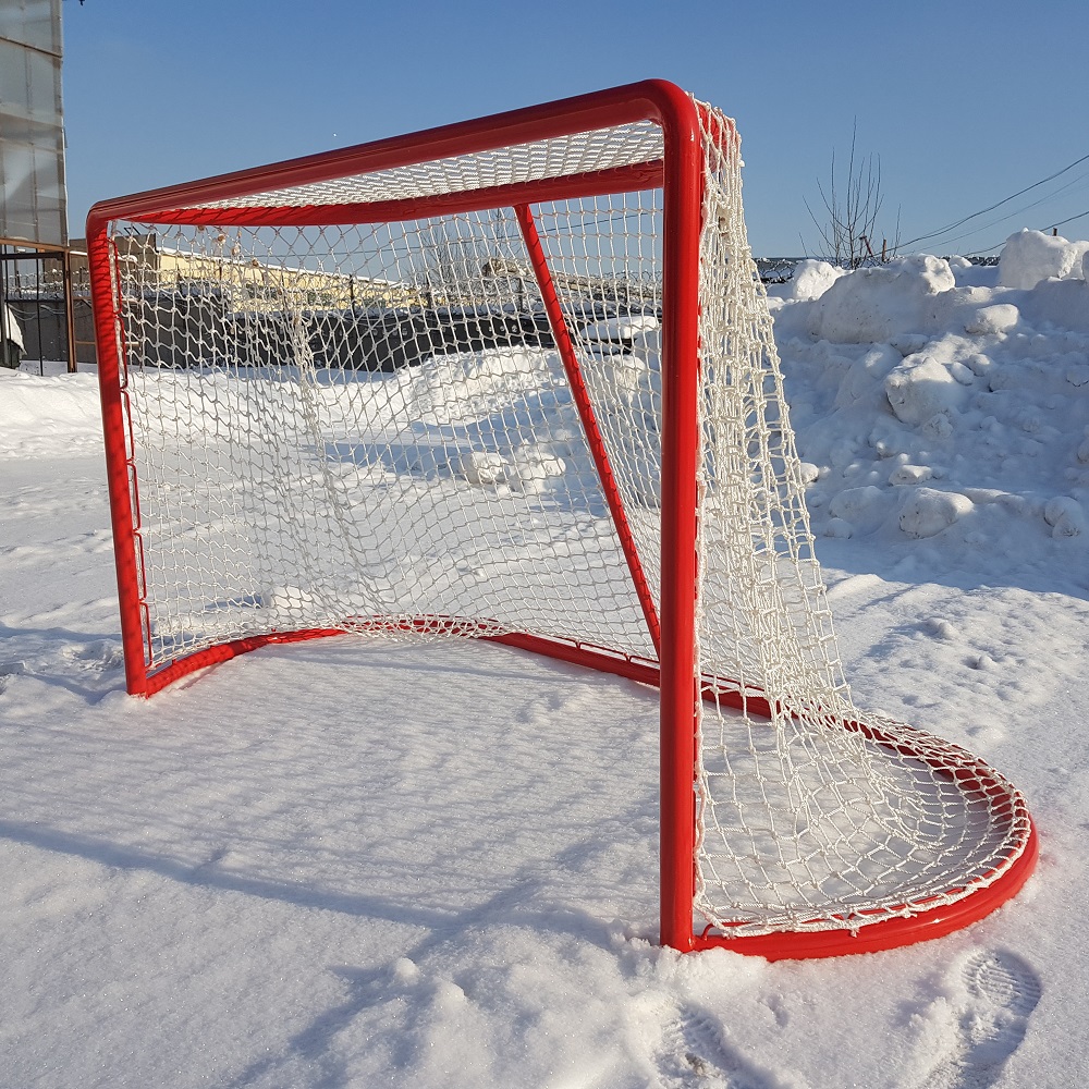 Ворота хоккейные под эластичные фиксаторы размером 183х122 см, предназначенные для профессиональных соревнований и тренировок.